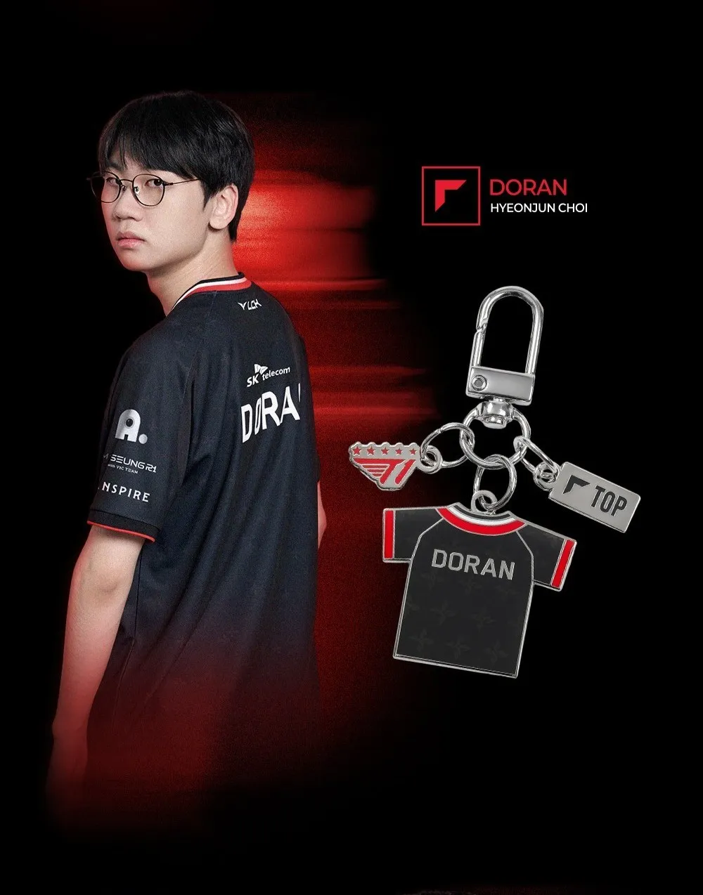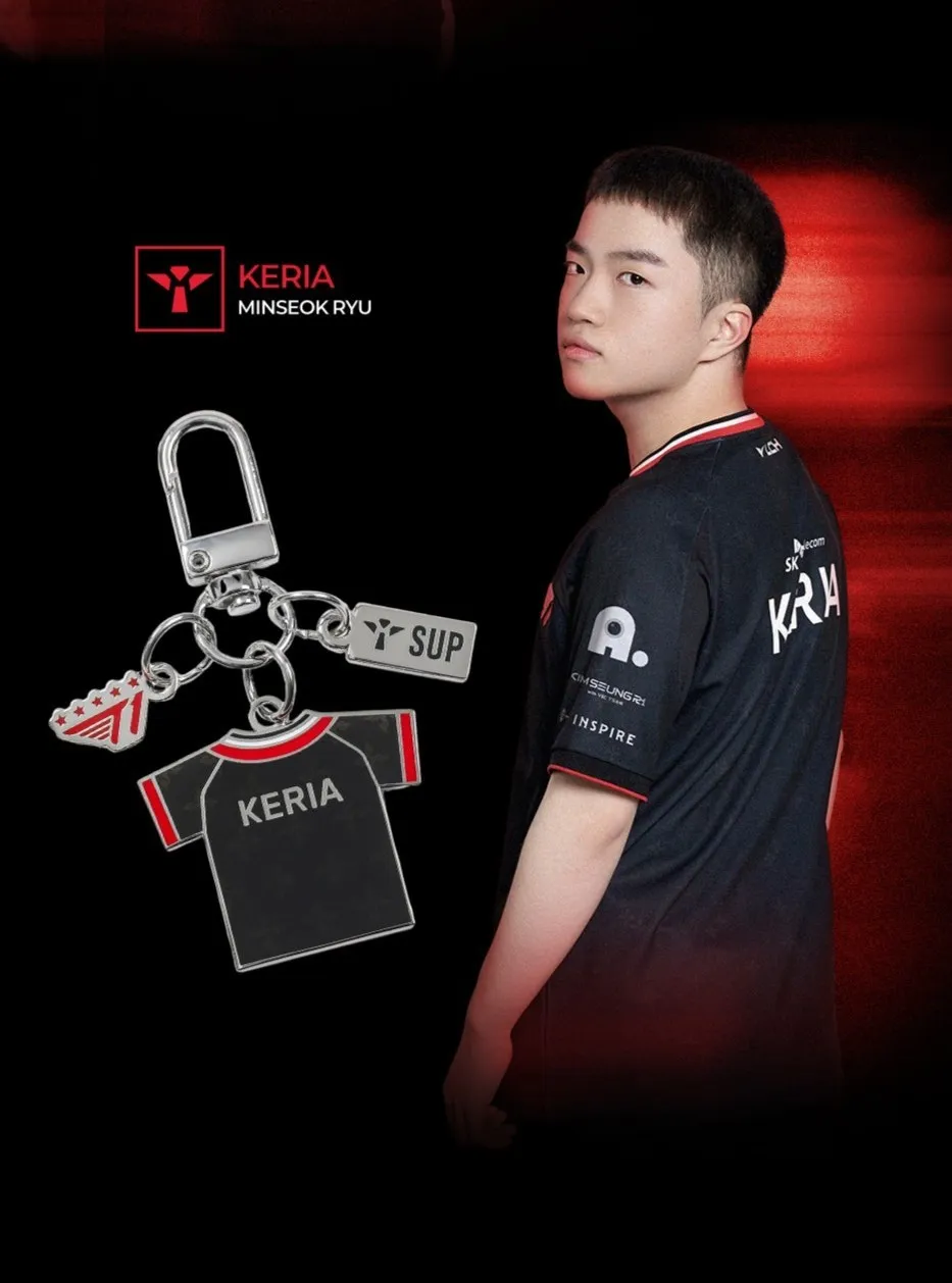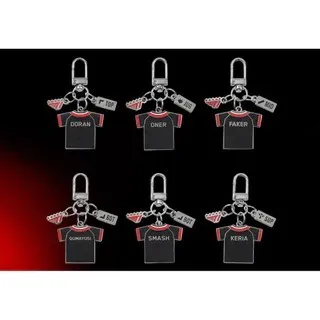 SKT004 2025限定T1隊服鑰匙圈 DORAN ONER FAKER GUMAYUSI KERIA SMASH 售價$599依照各成員的冠軍隊隊服所製成的鑰匙圈,具有收層價值尺寸 衣長32*35 右標籤 8*17 左標籤 7*19以下隊員,Oner 以下隊員,Smash 以下隊員,Gumayusi 以下隊員,Keria 以下隊員,Doran 以下隊員,Faker
