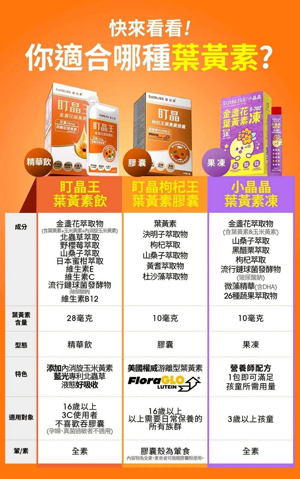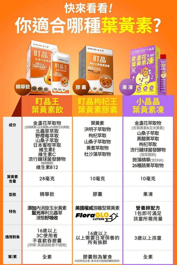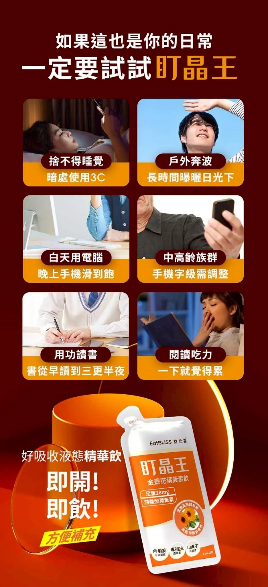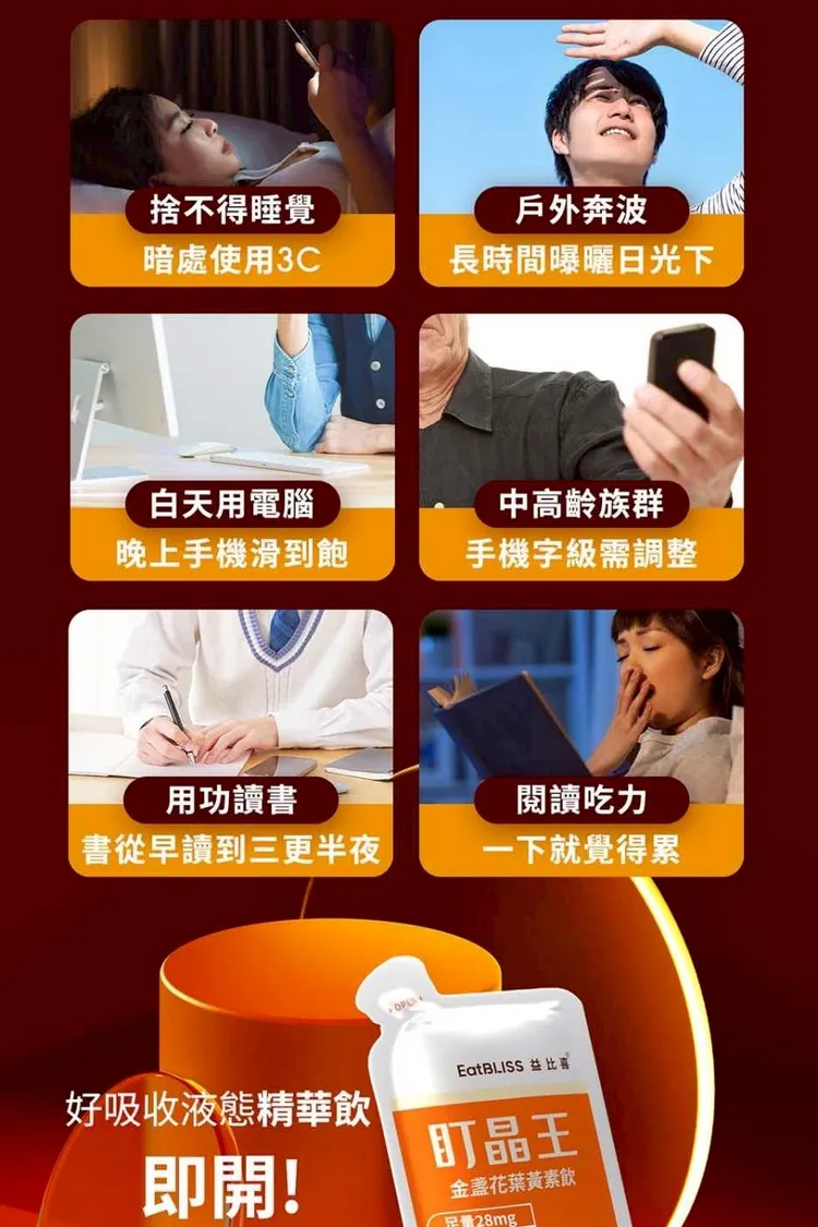 適合 : 長時間使用手機電腦+長時間日光照射+深夜念書
