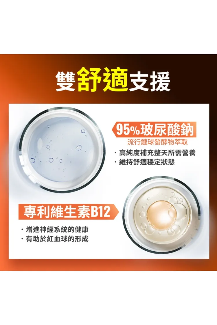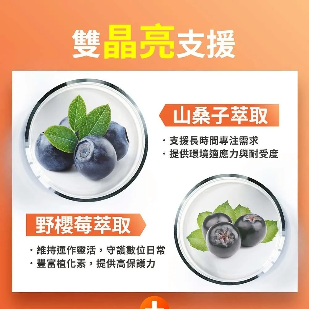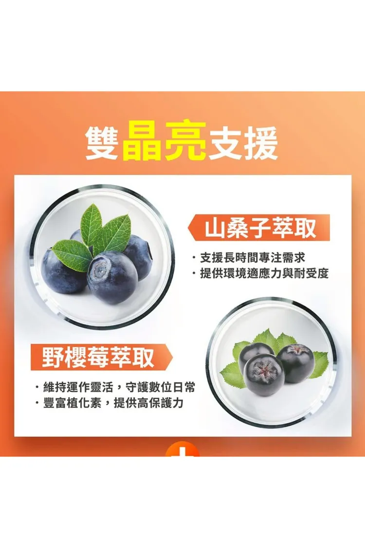 支援 : 野櫻莓萃取+山桑子萃取+維生素B12+玻尿酸鈉