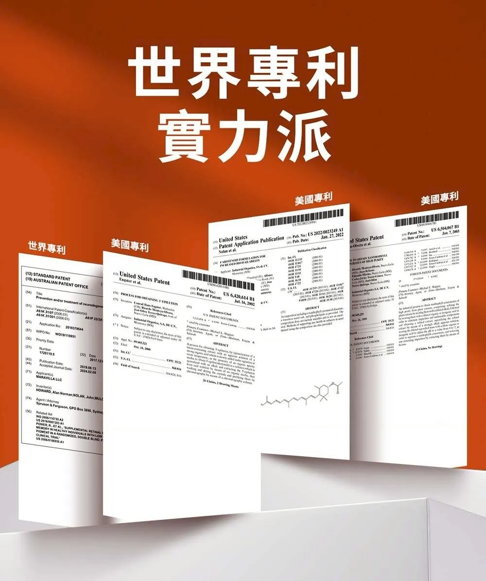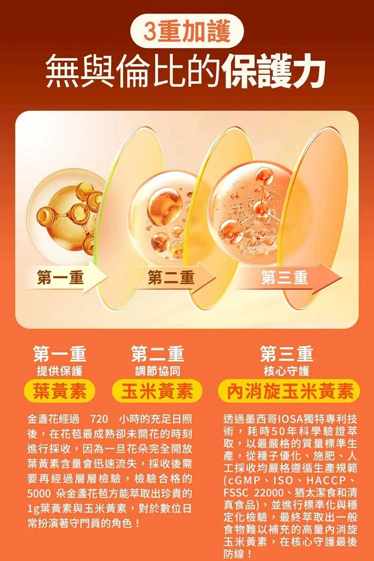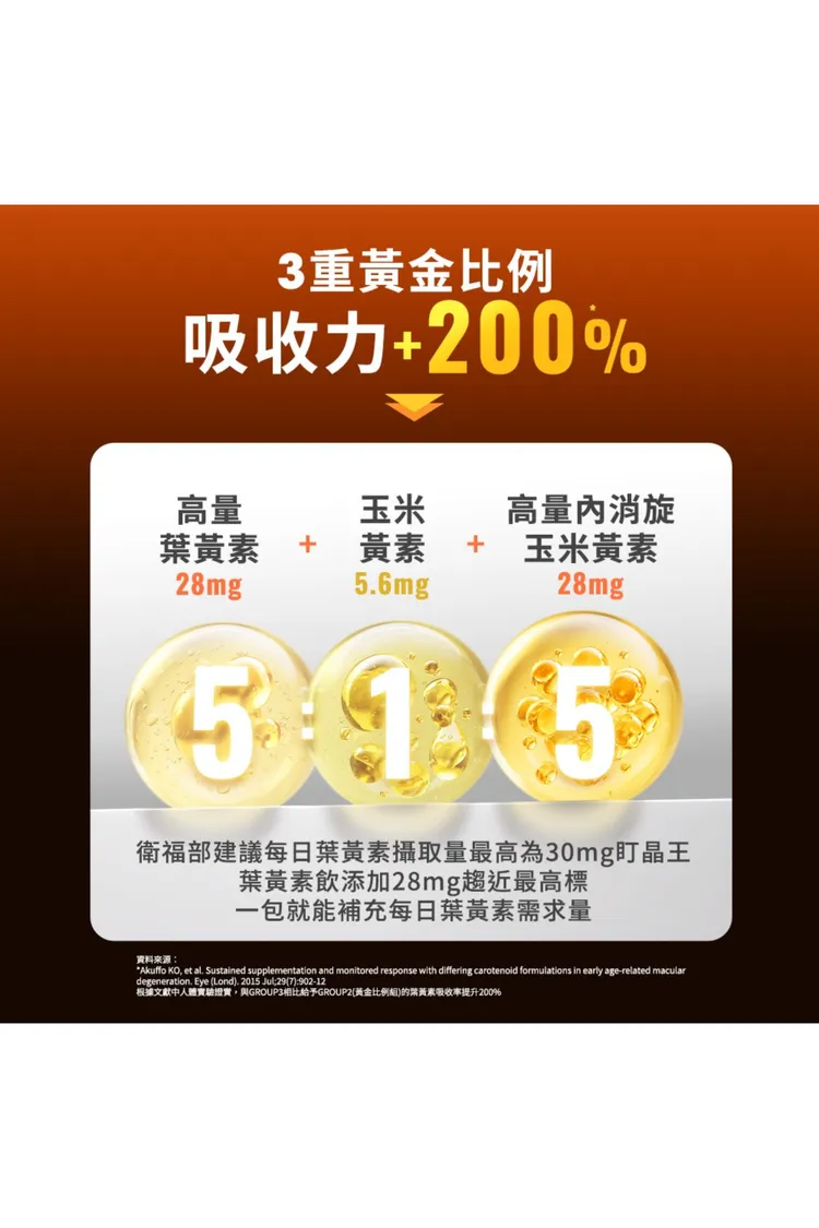 成分 : 高濃28mg葉黃素+5.6mg玉米黃素+濃28mg內消旋玉米黃素