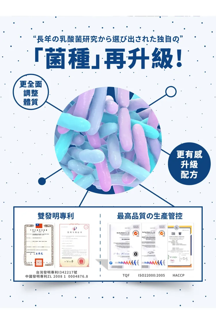 效果 : 均衡營養+增加好菌存活率+耐胃酸受性佳