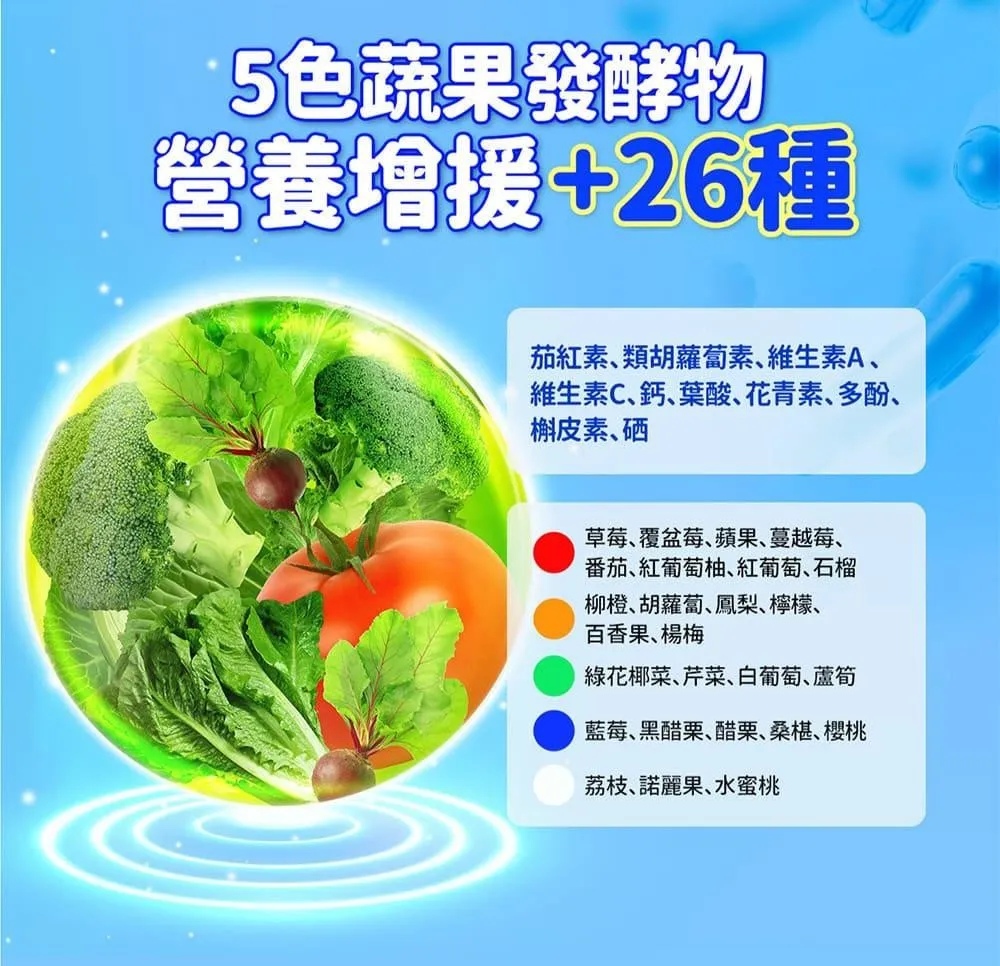 內含 : 半乳寡糖+19種蔬果酵素,龍根菌、比菲德氏菌,