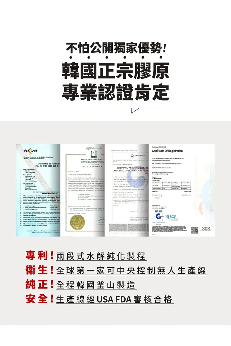 專利 : 一包擁有6000毫克「濃密型雙胜膠原」+兩段式水解純化製程