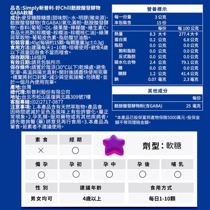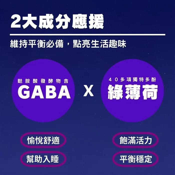 成分 : 茶胺酸+GABA+酸棗仁+穀胱甘肽+消化酵素+日本紫茶+藤黃果