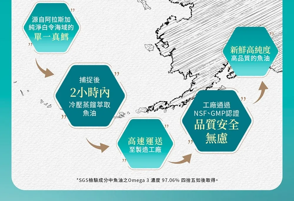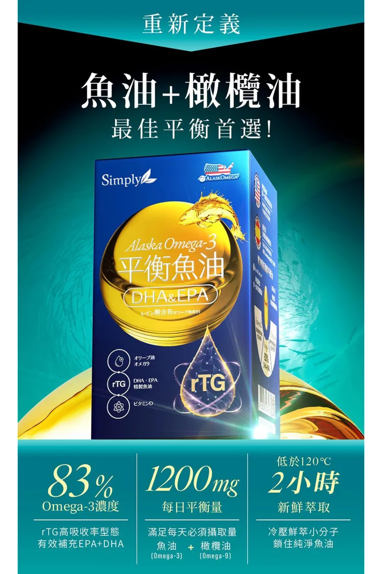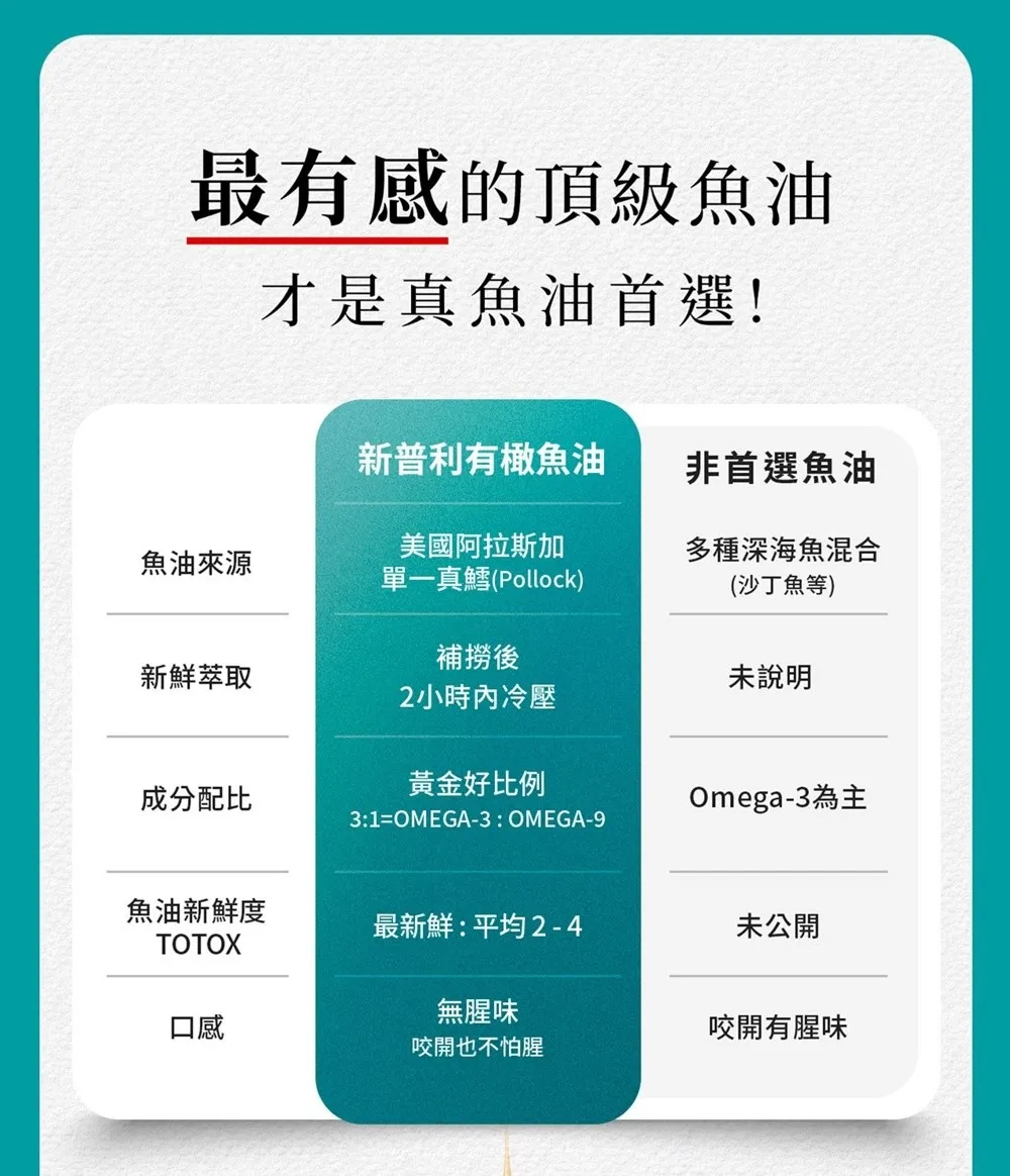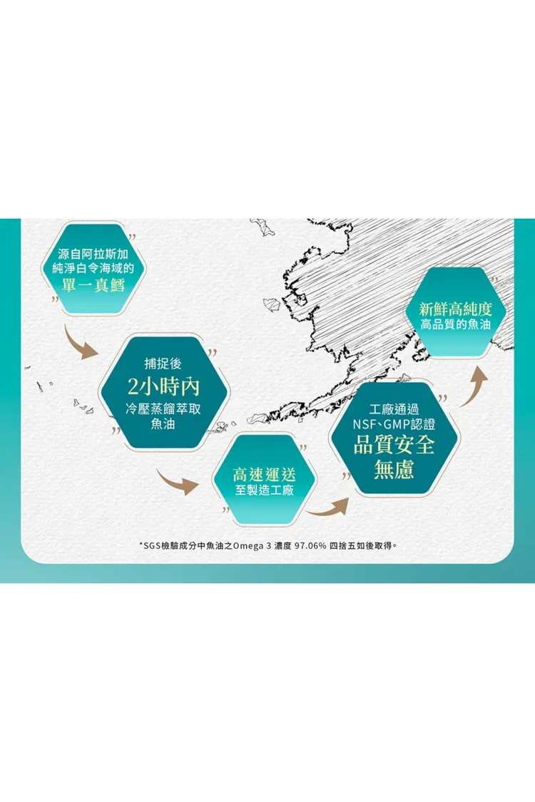 專利 : 來自阿拉斯加100%單一純淨原鱈魚油X冷壓初榨橄欖油
