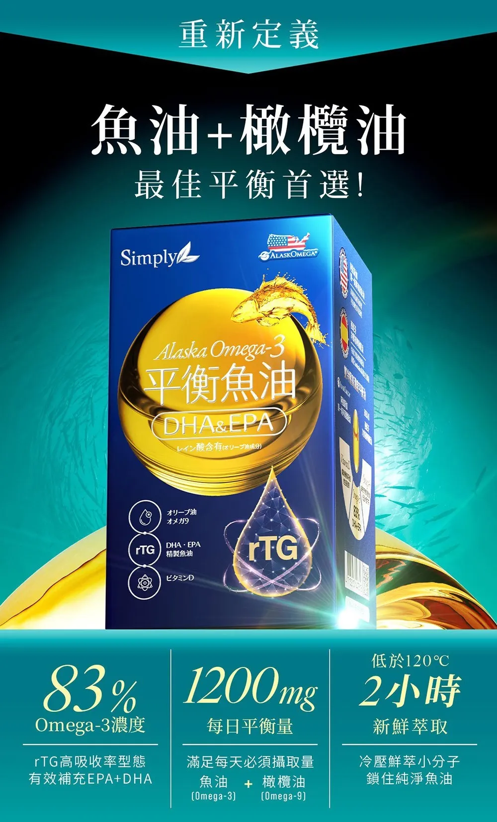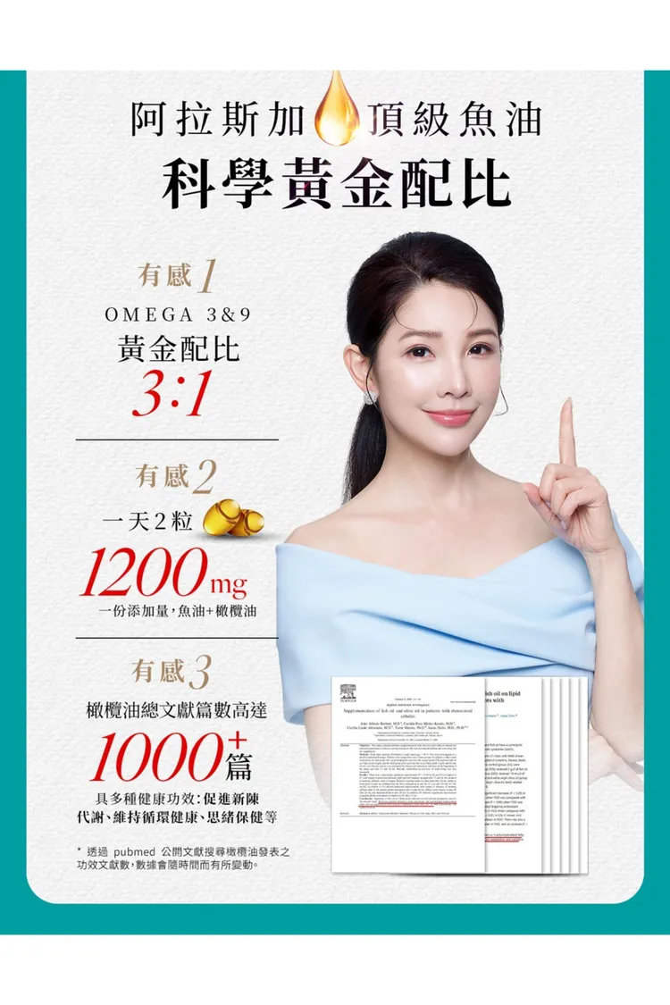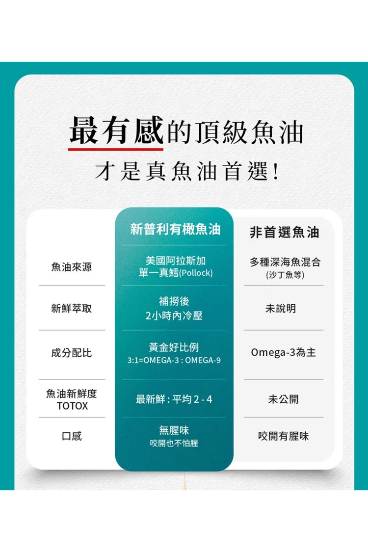 專利 : 來自阿拉斯加100%單一純淨原鱈魚油X冷壓初榨橄欖油