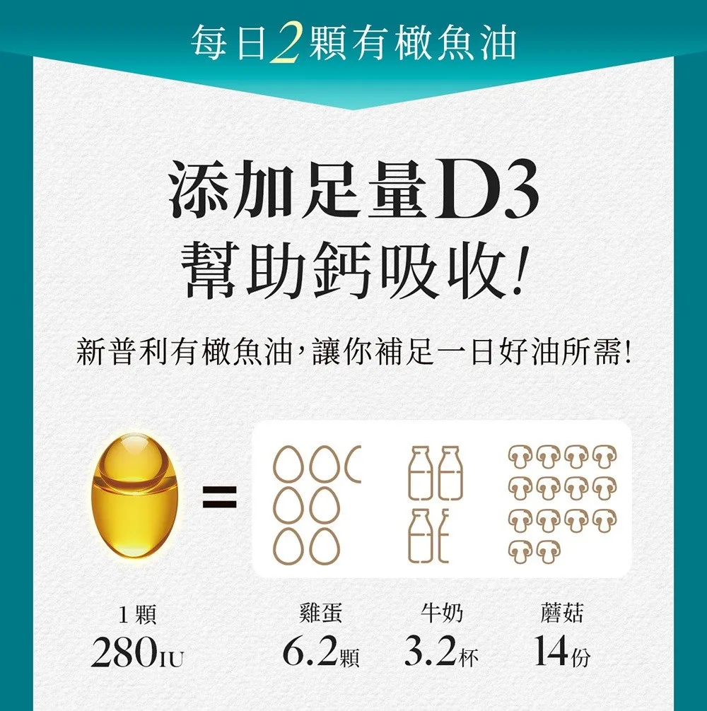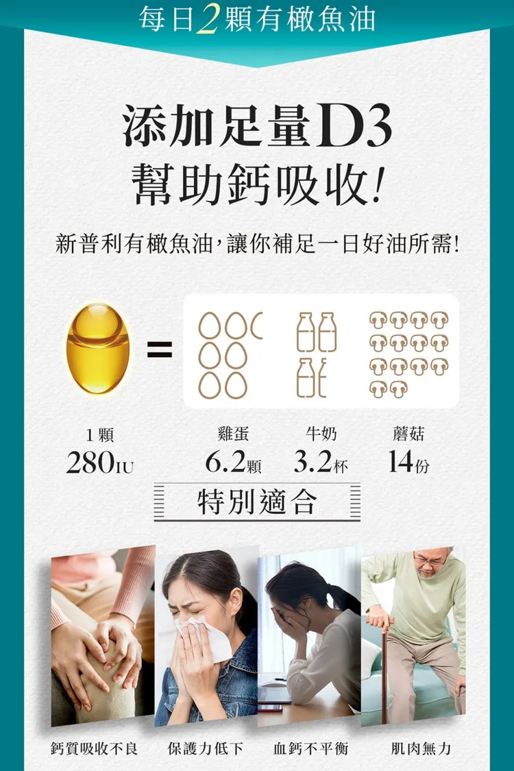 平衡 : 維生素D3+橄欖多酚omega-9,維持血鈣平衡