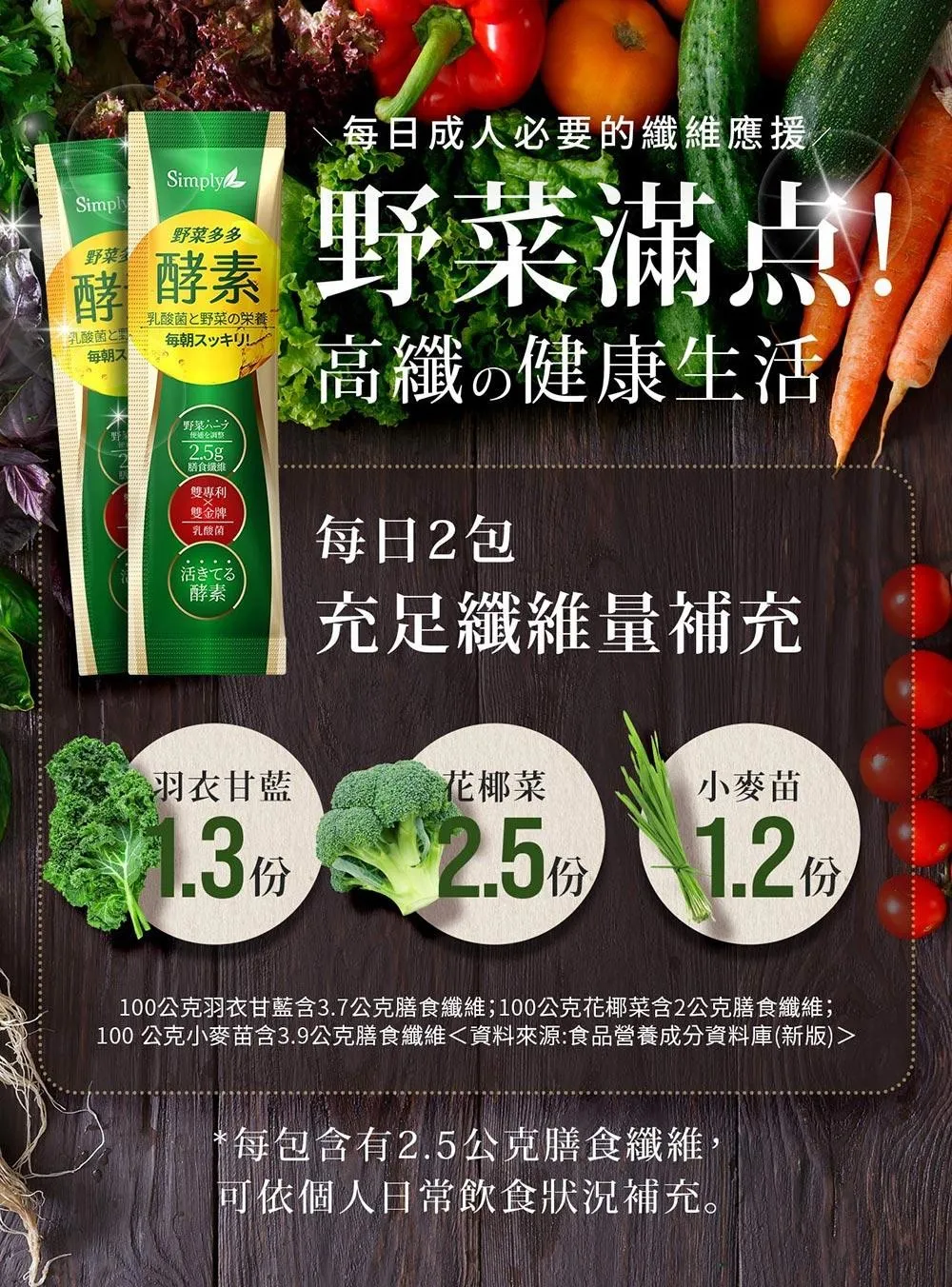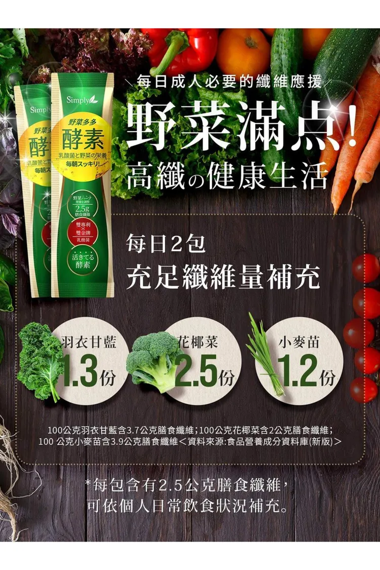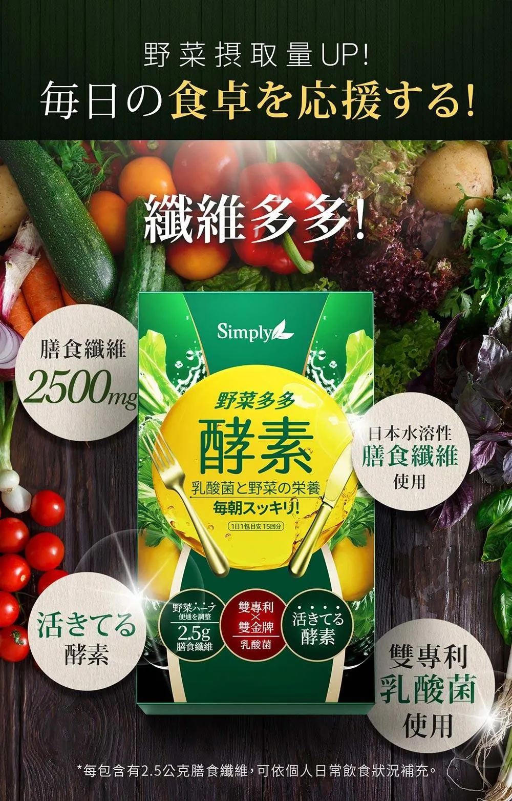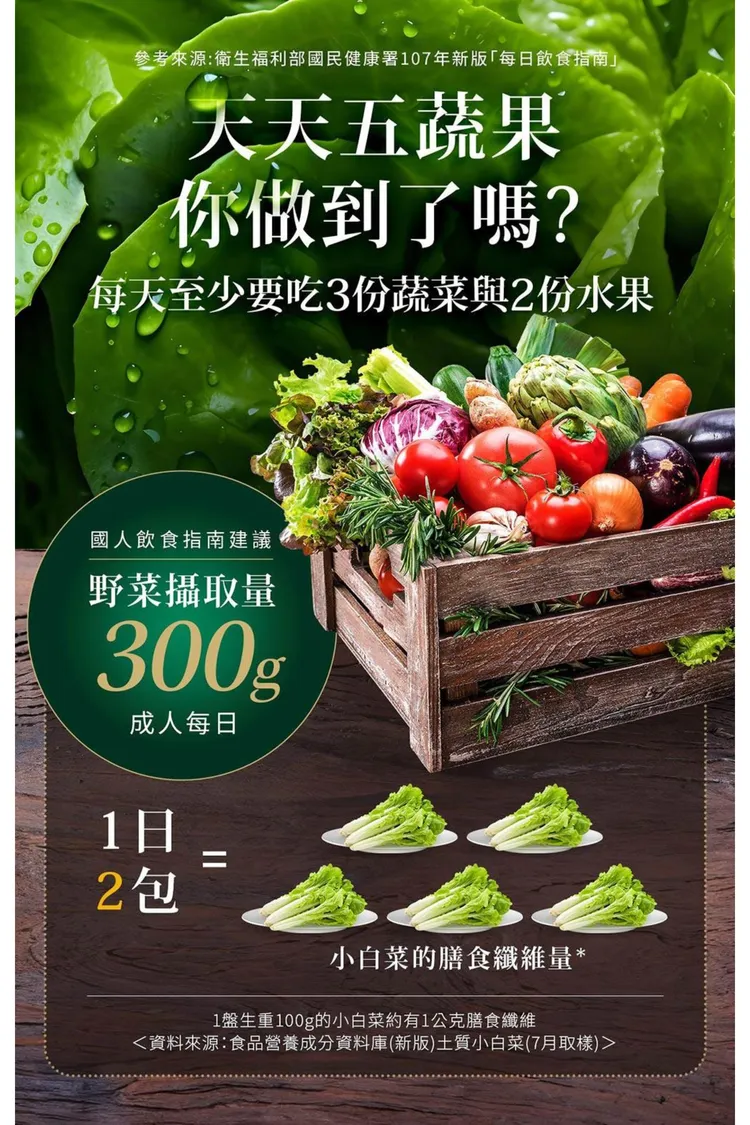 專利 : 1包即內含2500mg膳食纖維=300公克蔬菜