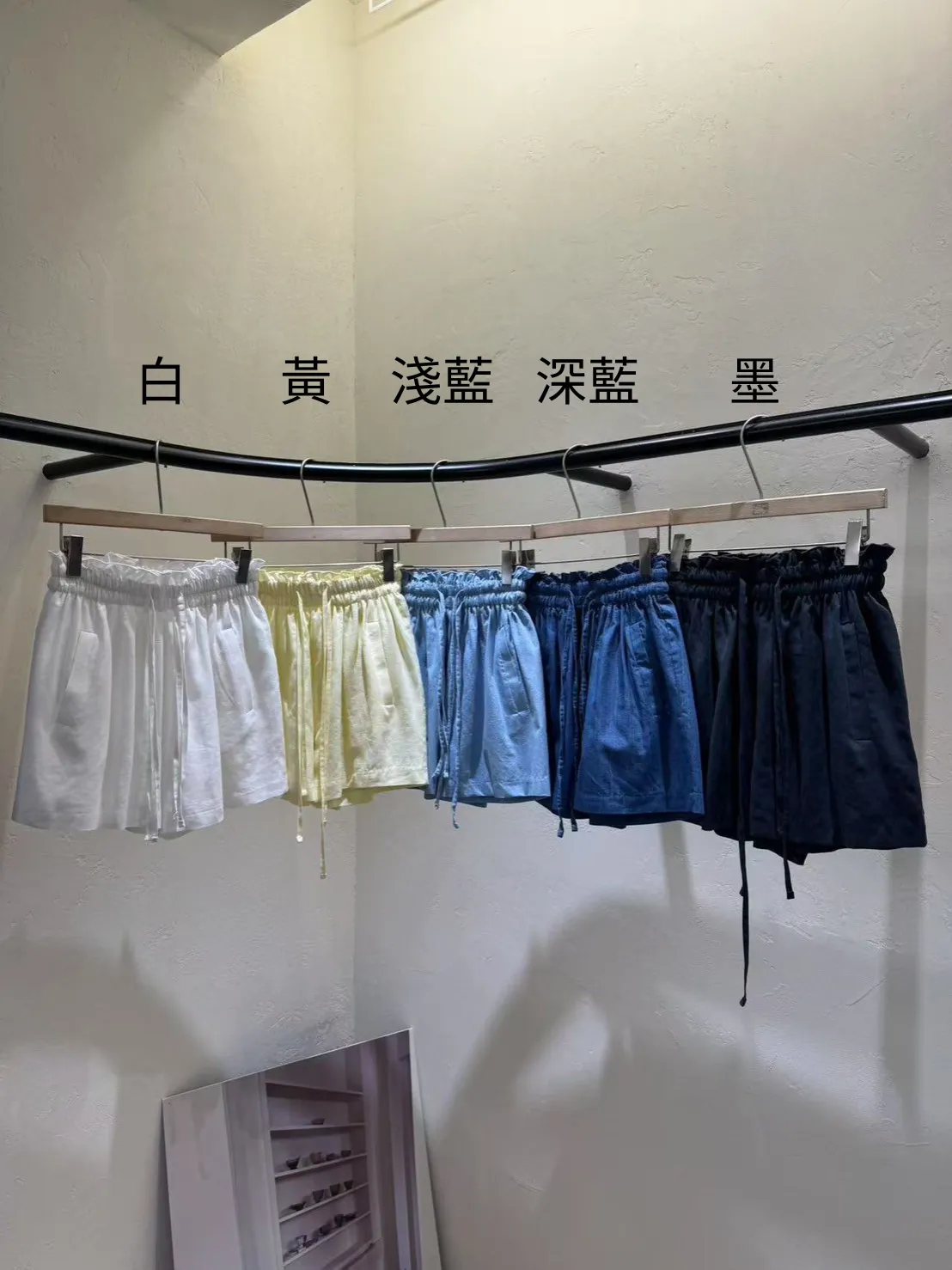 材質根據顏色不同 腰鬆緊有抽繩 有口袋 只有白色黃色含內裡 L號友善