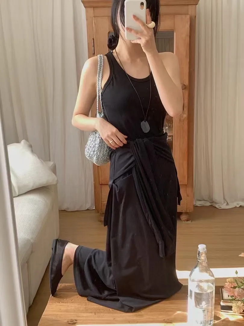 聚酯+彈力 腰綁帶遮腹遮臀 有彈性 薄款合身 度假設計感