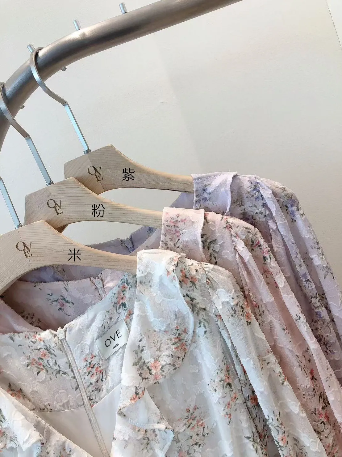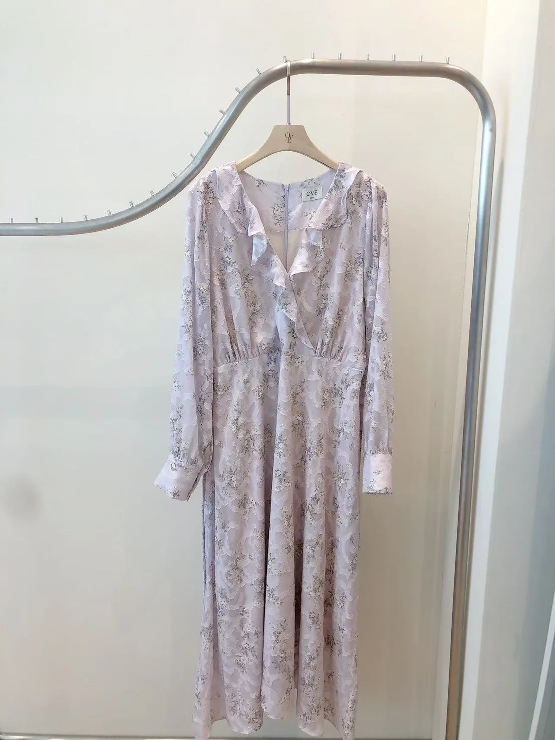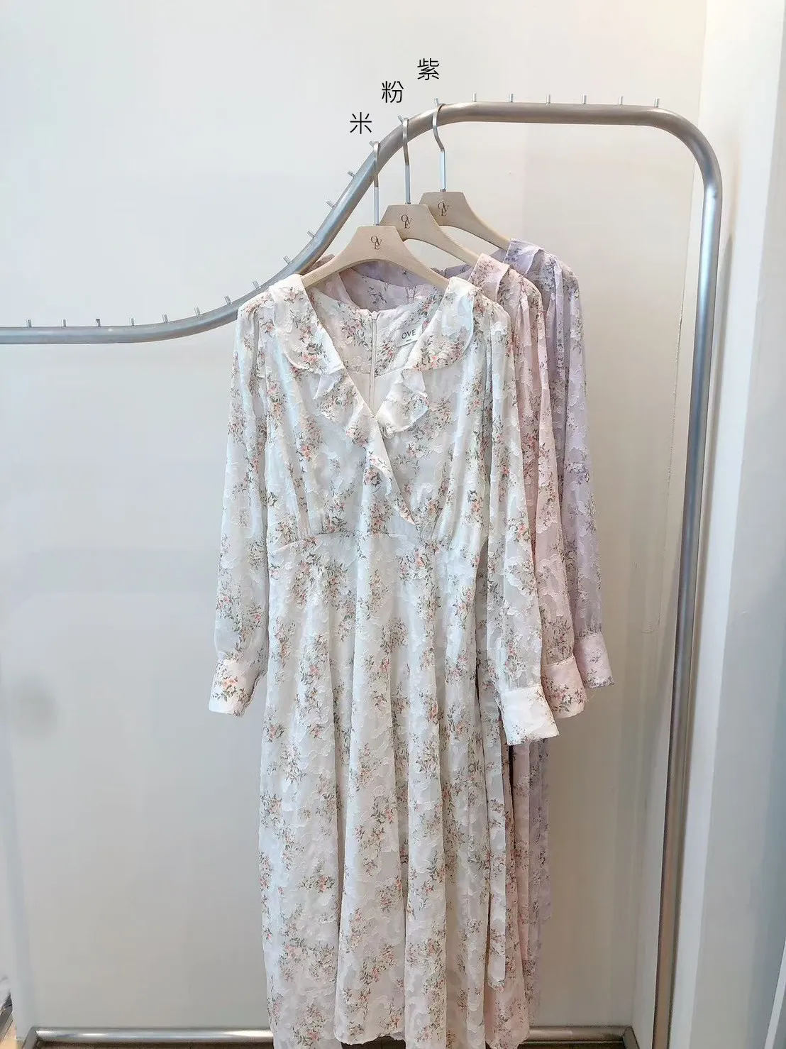 TW037荷葉V領小花洋裝 米 粉 紫 官網價$1720 線上價$1690