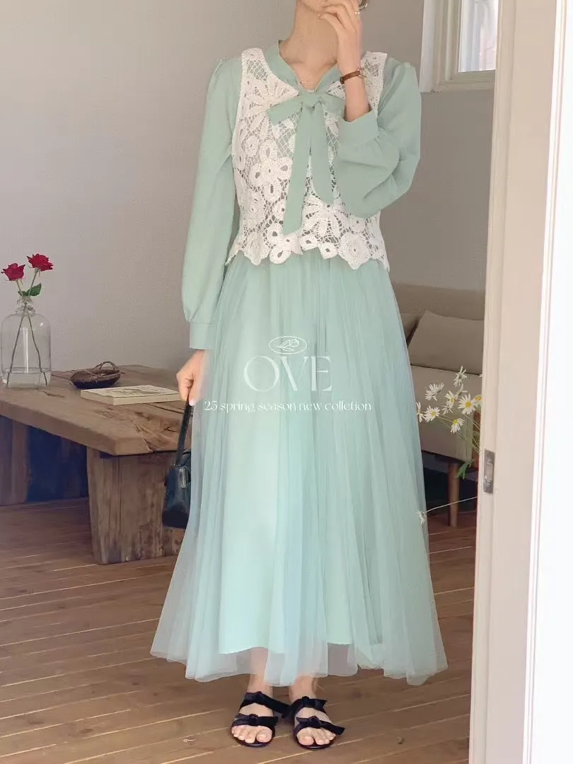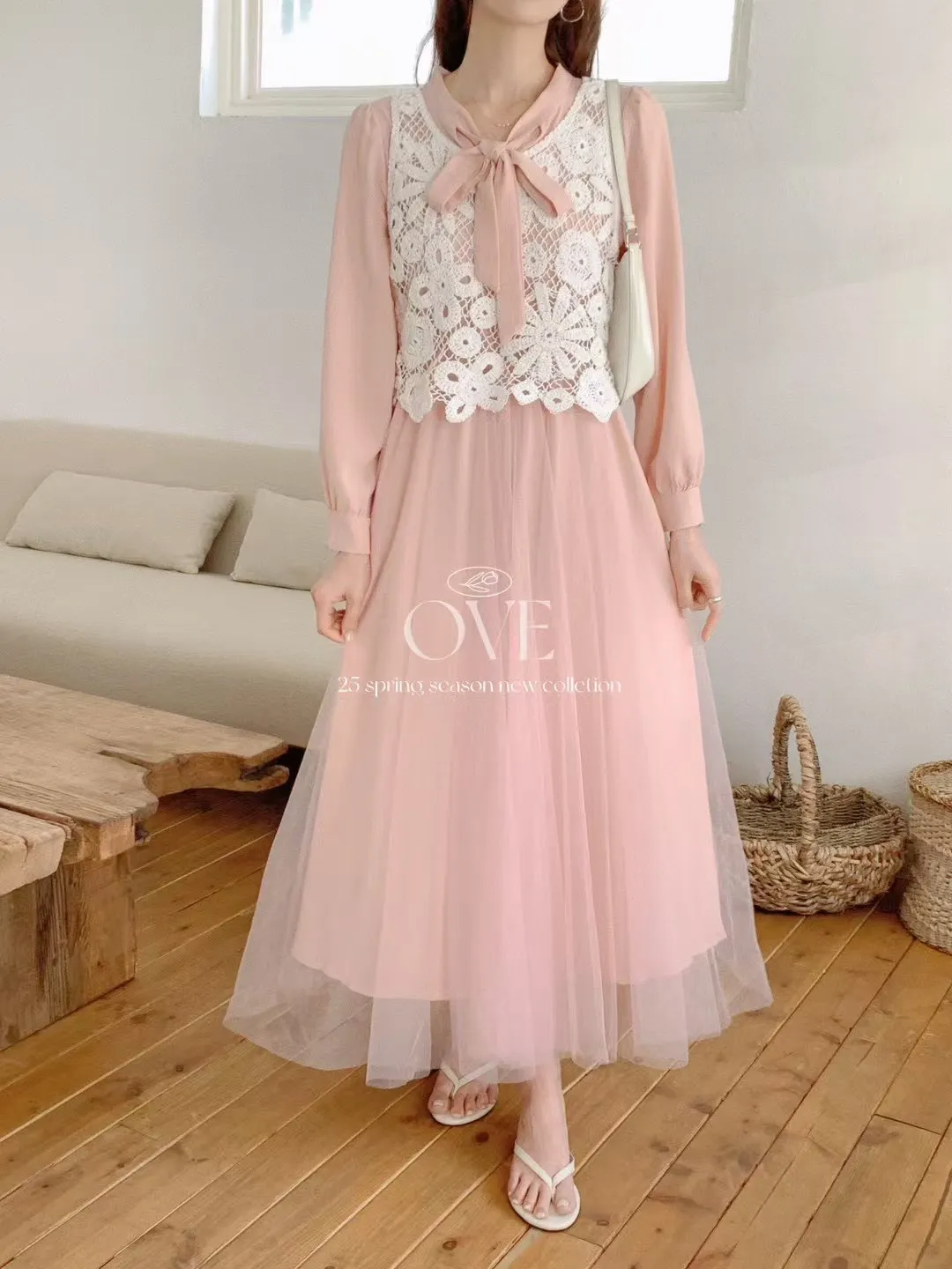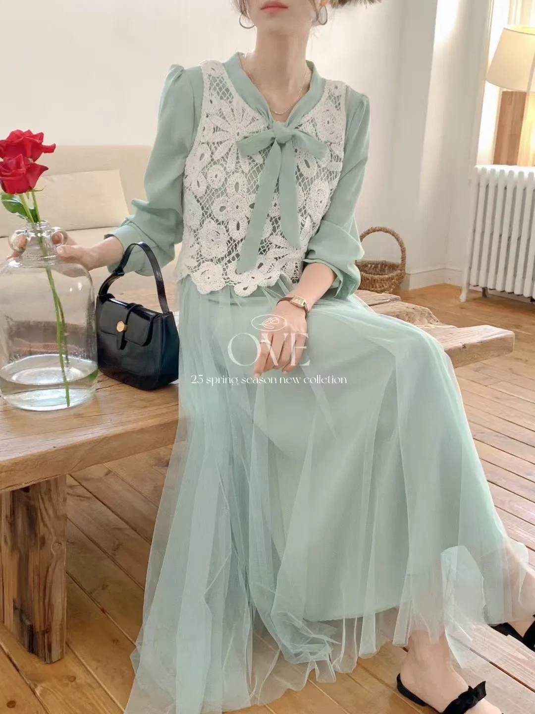 TW038仙女蕾絲胸綁帶紗裙洋裝 米 粉 綠 黑 奶茶 官網價$1250 線上價$1220