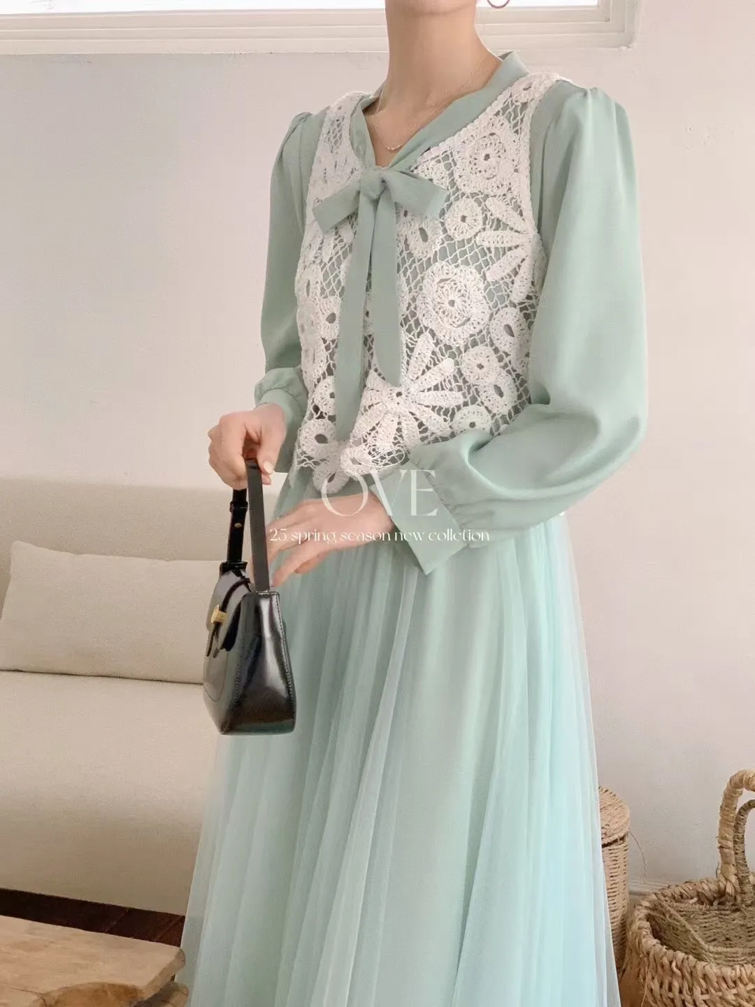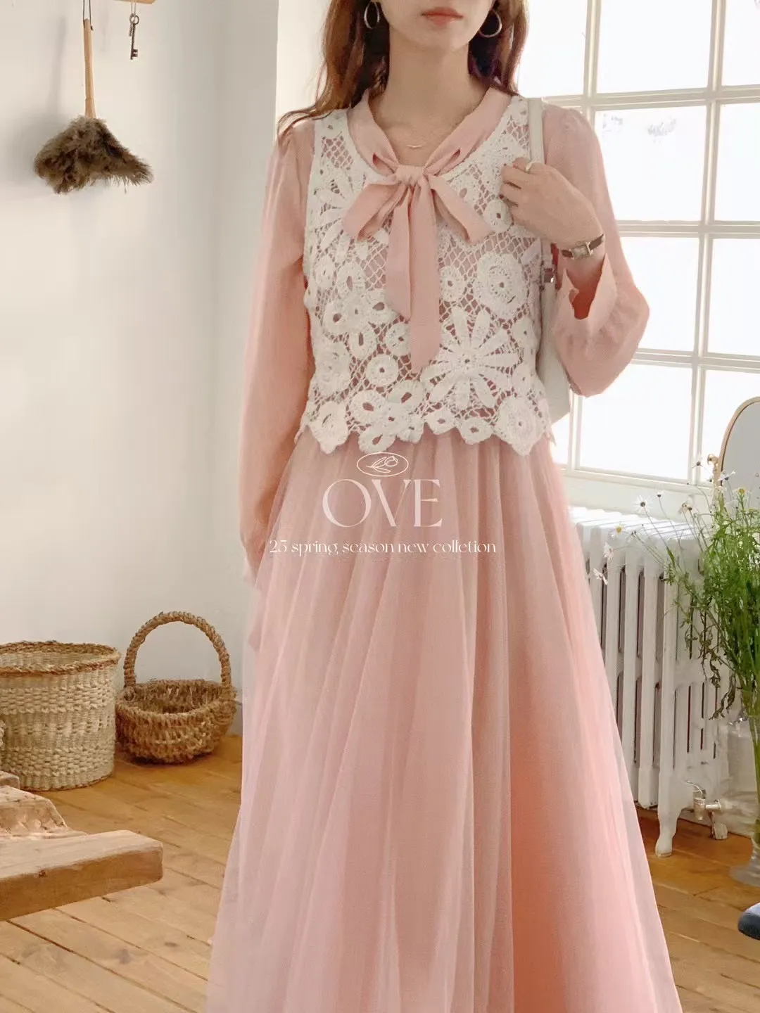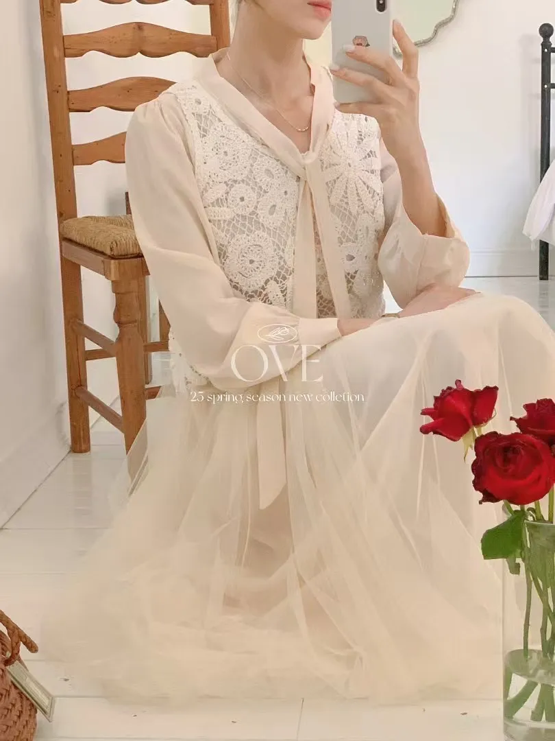 TW038仙女蕾絲胸綁帶紗裙洋裝 米 粉 綠 黑 奶茶 官網價$1250 線上價$1220
