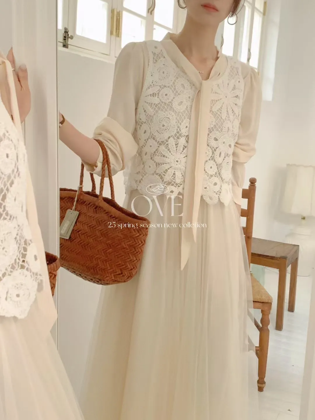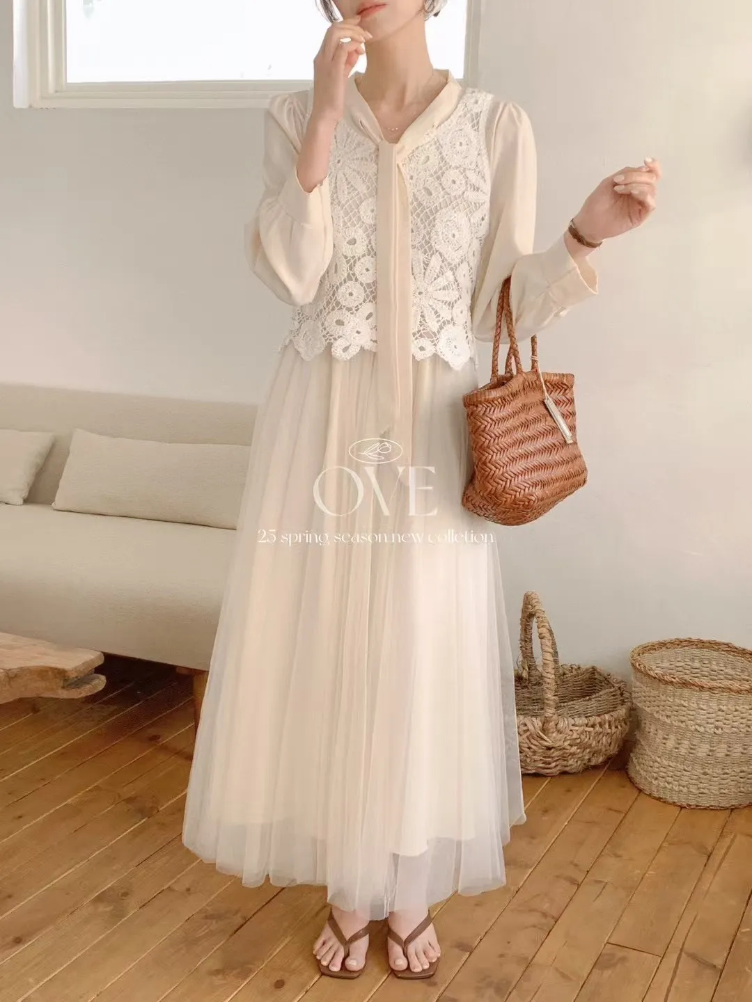 棉+聚酯 針織棉蕾絲背心可拆 夢幻紗裙 有內裡 淺色微透 高胸線顯腿長
