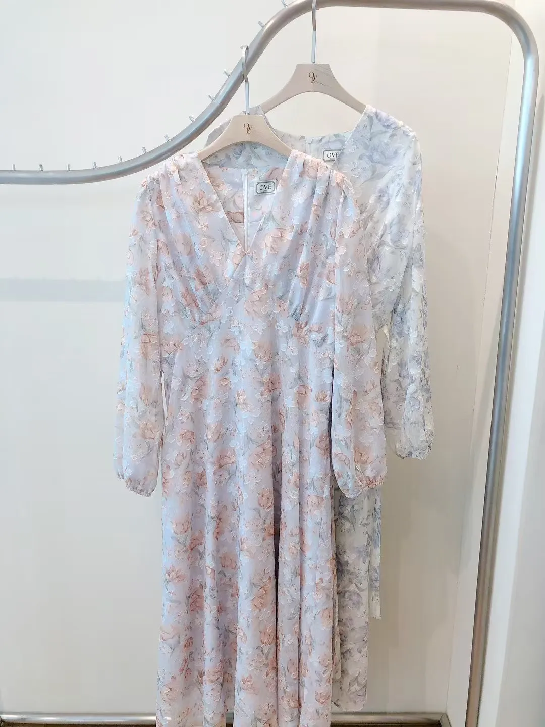 雪紡 腰綁帶 手袖鬆緊 拉鍊穿脫 層次肩膀車線 亮絲面料