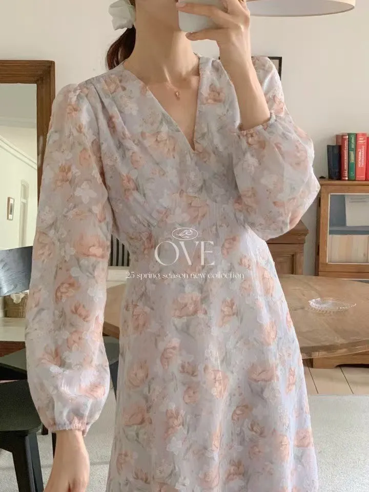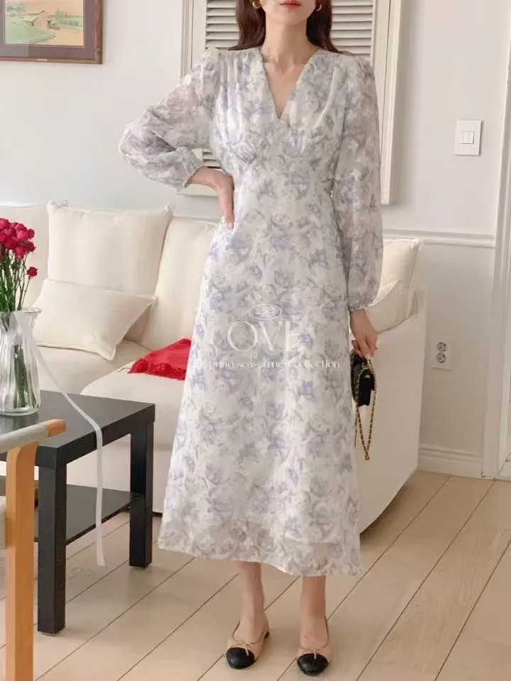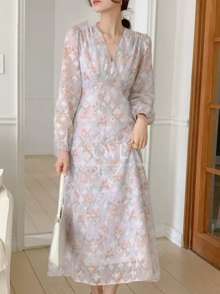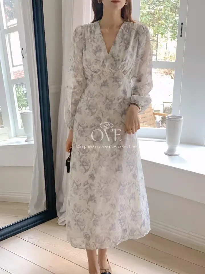 TW047雪紡V領亮絲氣質洋裝 米 紫 官網價$1690 線上價$1660