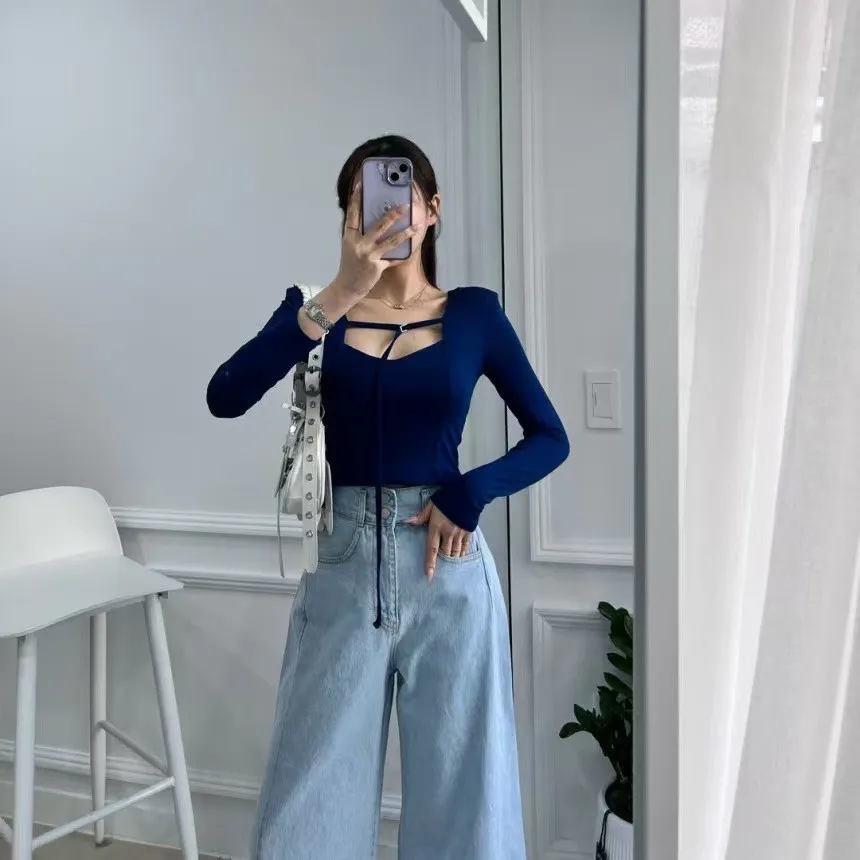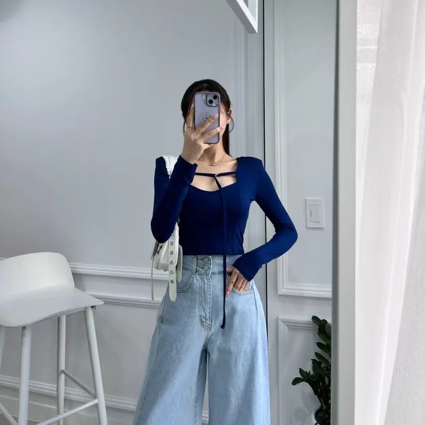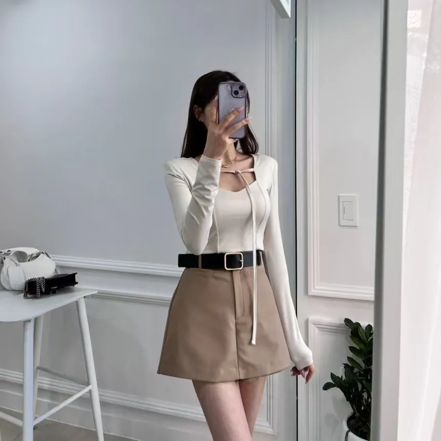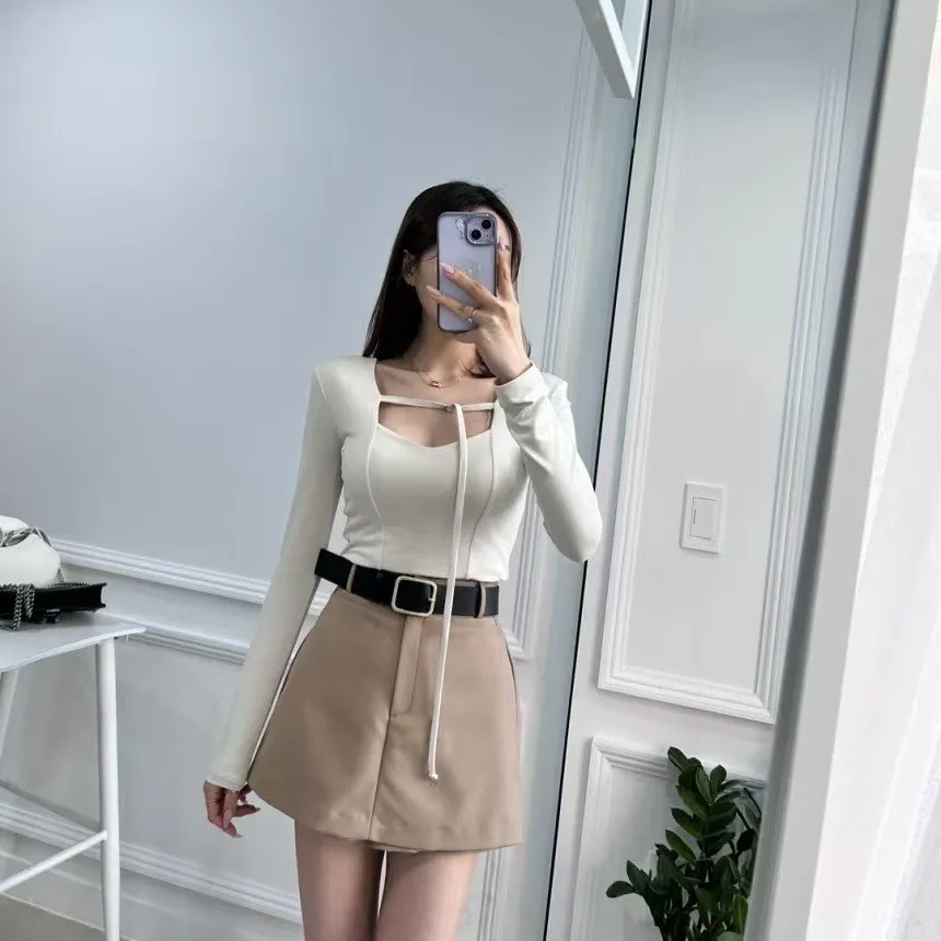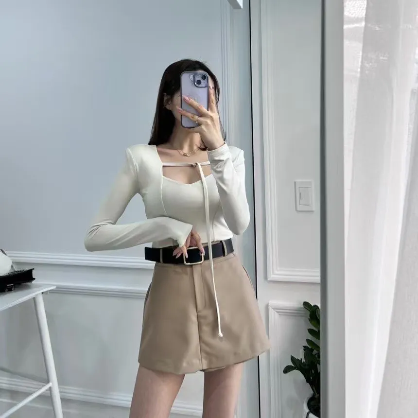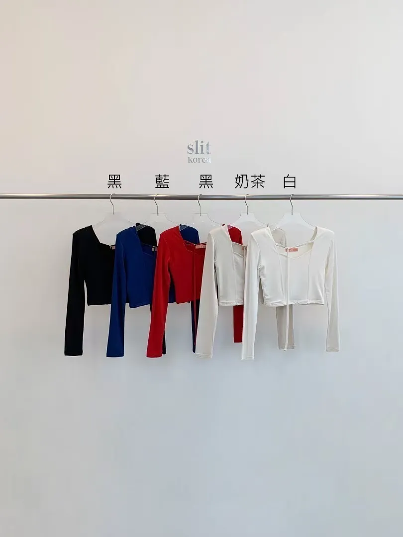 TW077推薦款鑽石方領綁帶短版上衣 白 紅 藍 黑 奶茶 官網價$720 線上價$690