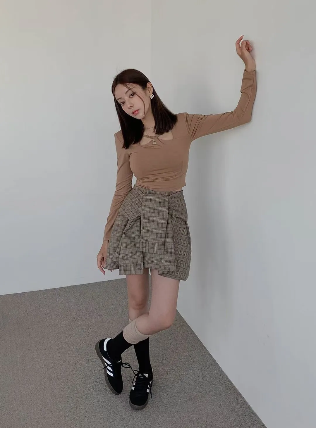 TW078英倫設計款格紋褲裙 灰 奶茶 官網價$1340 線上價$1310