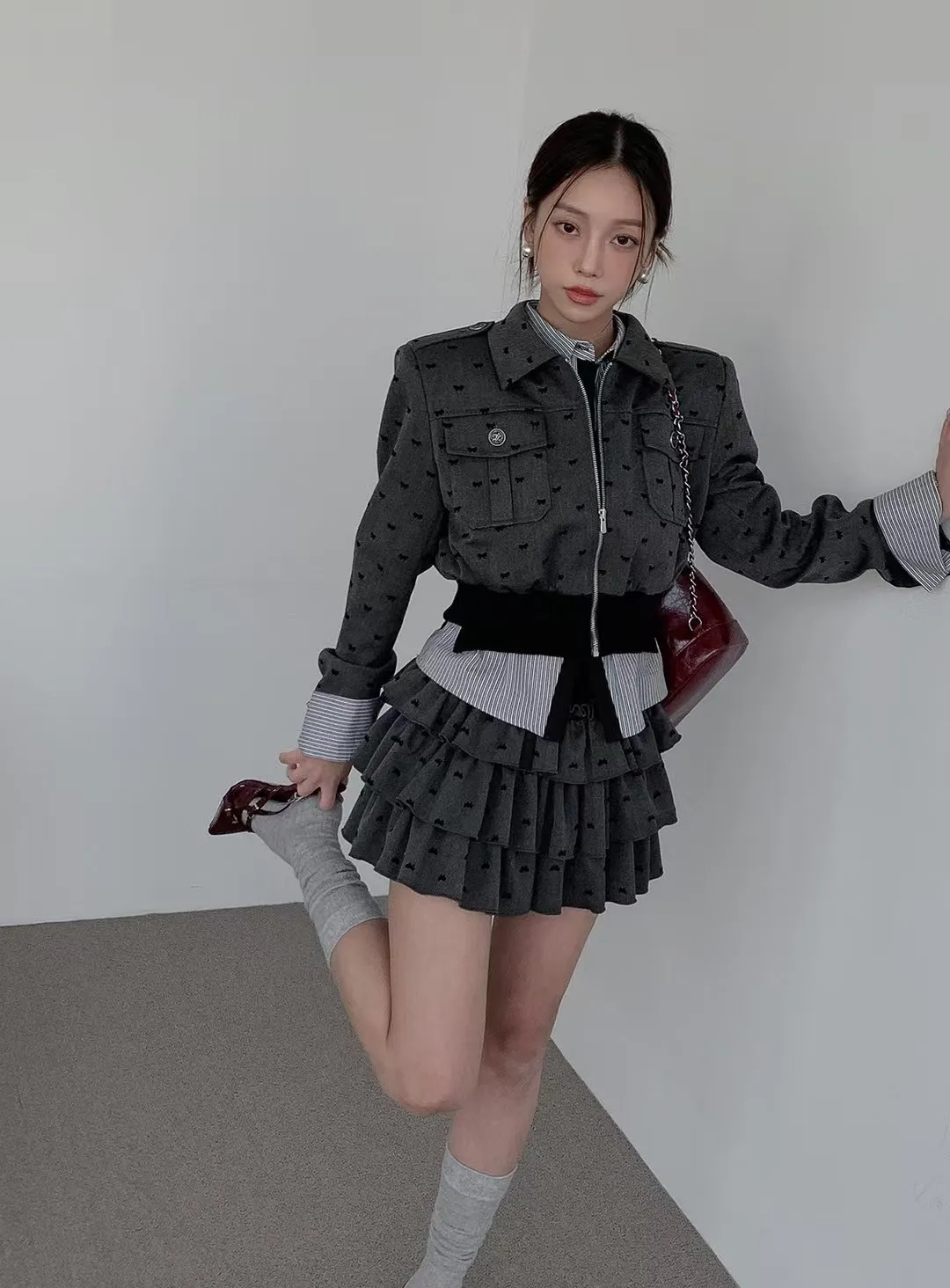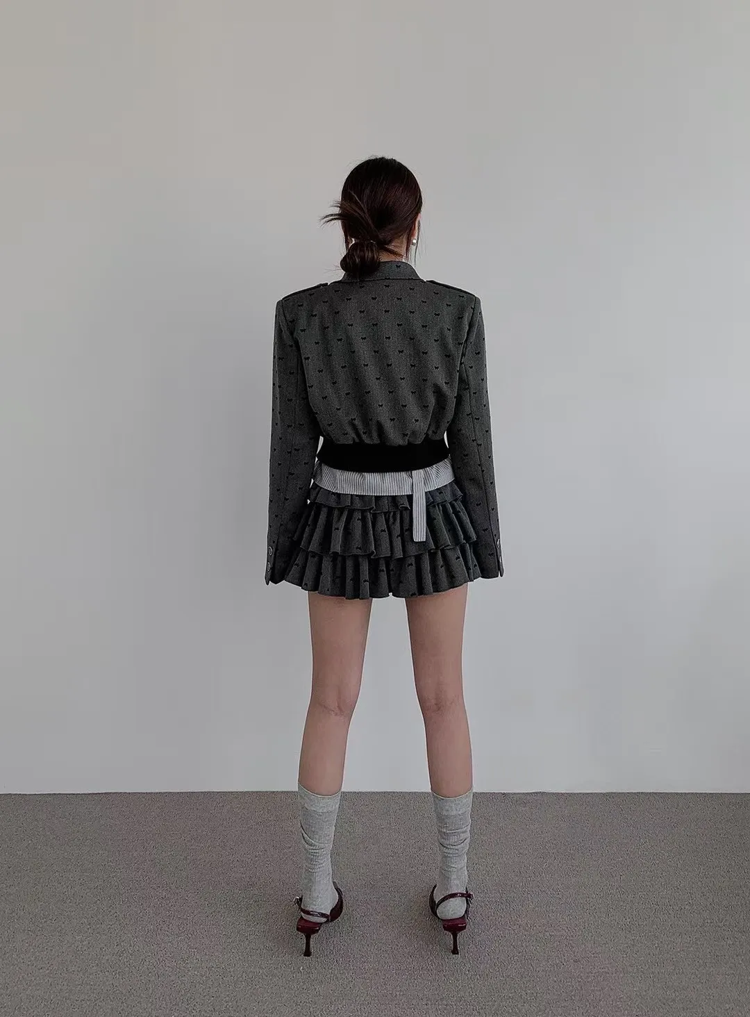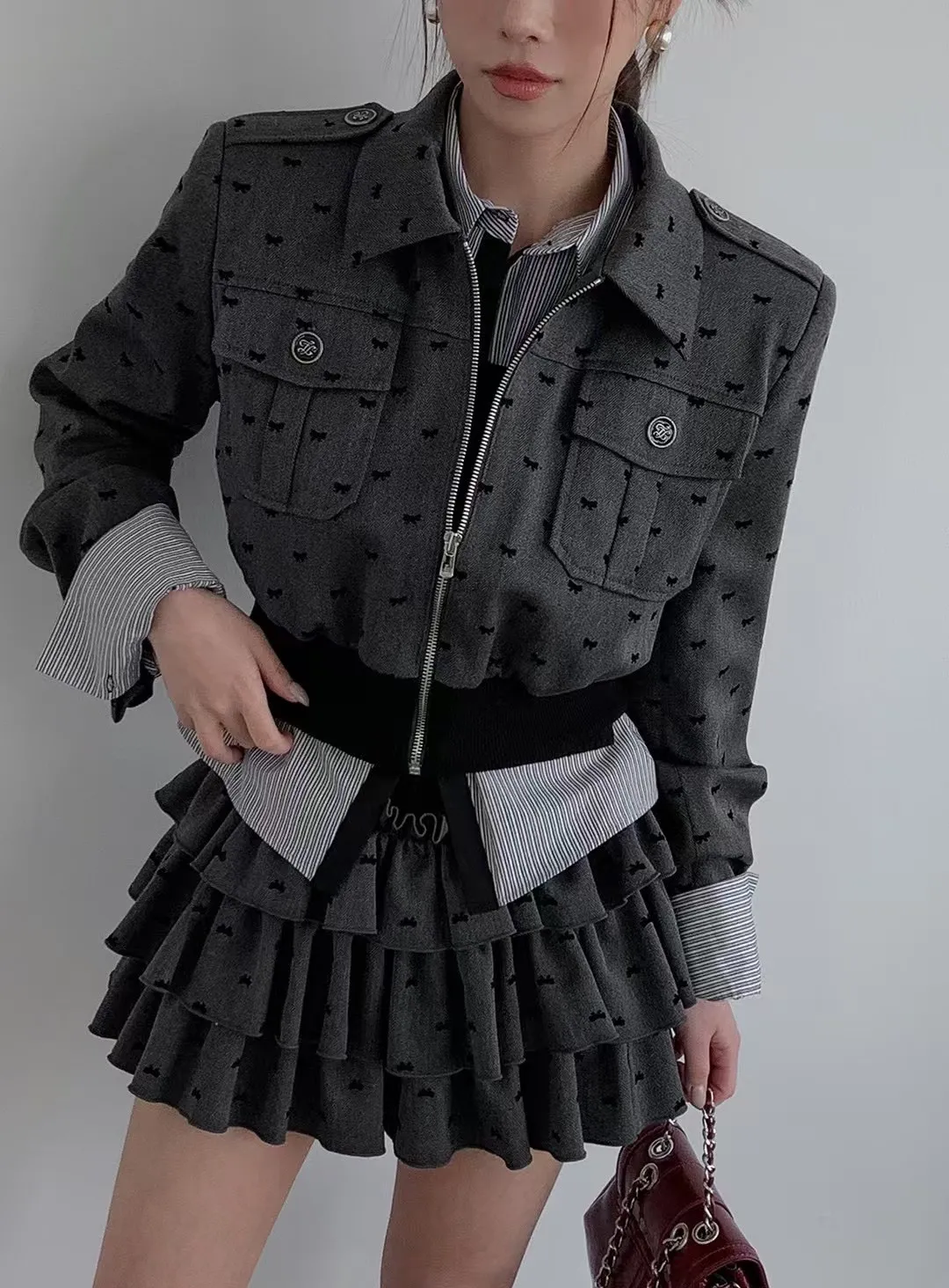 TW086套裝的小蝴蝶結細腰外套 灰 黑 官網價$2080 線上價$2050