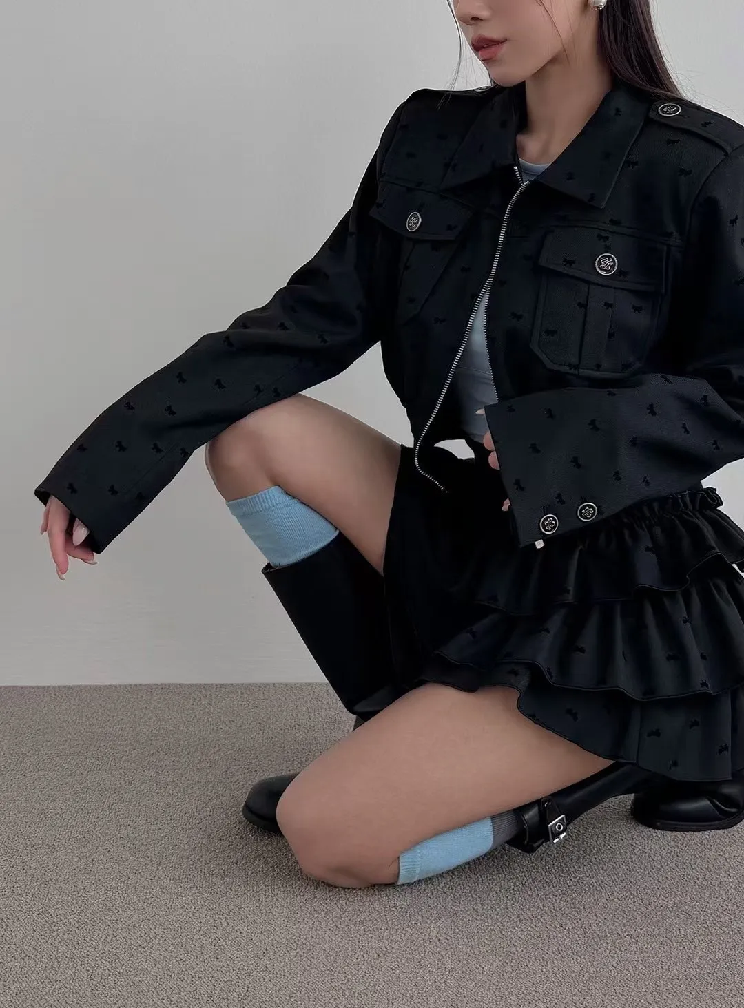 棉+聚酯 拉鍊穿脫 短版細腰好比例 有口袋 精緻美釦