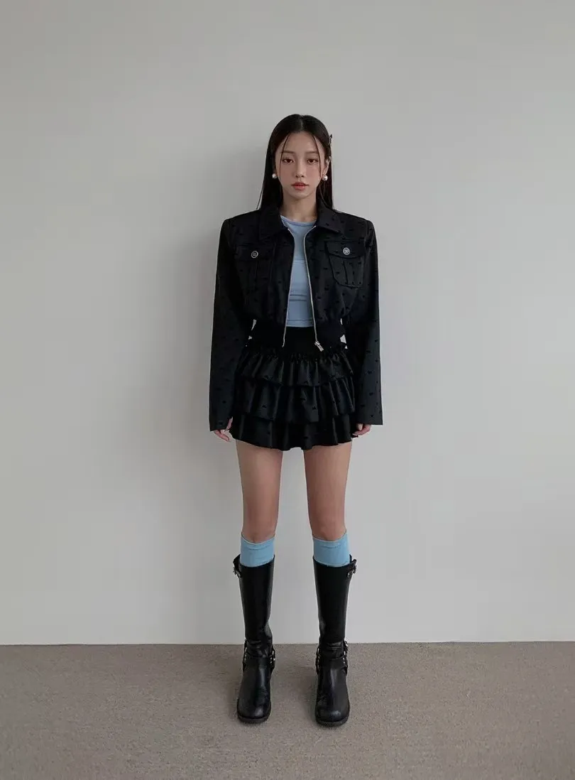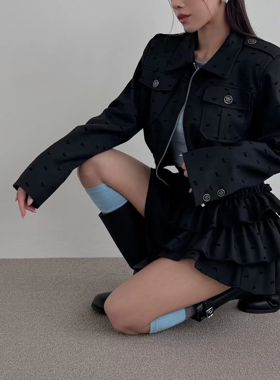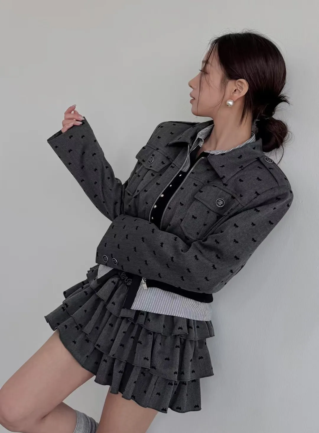 TW087套裝的小蝴蝶結蛋糕褲裙 灰 黑 官網價$1050 線上價$1020
