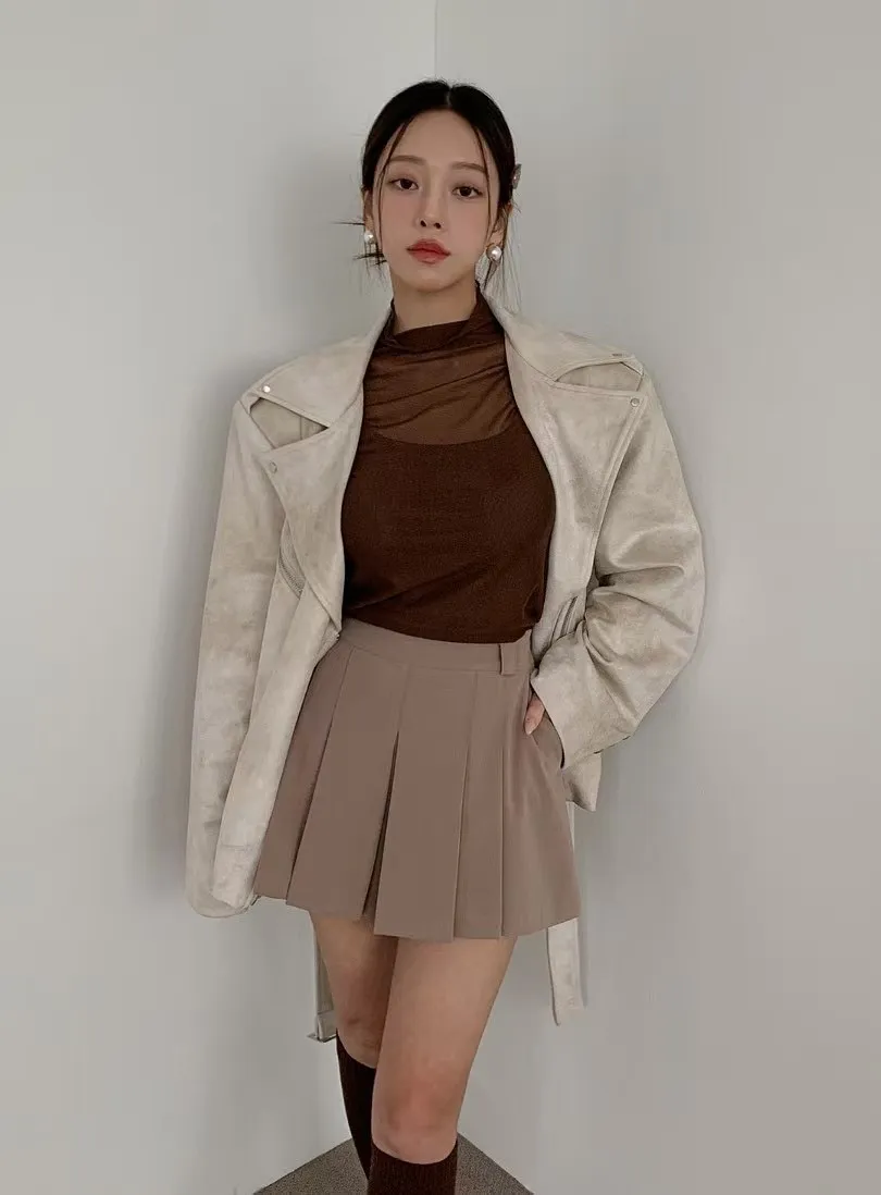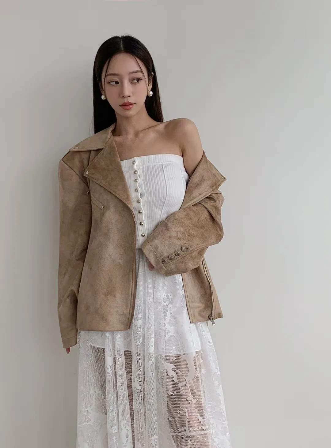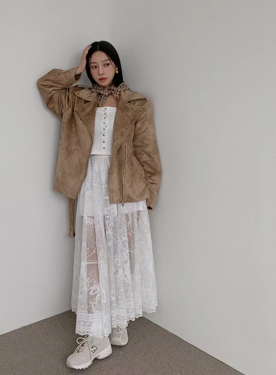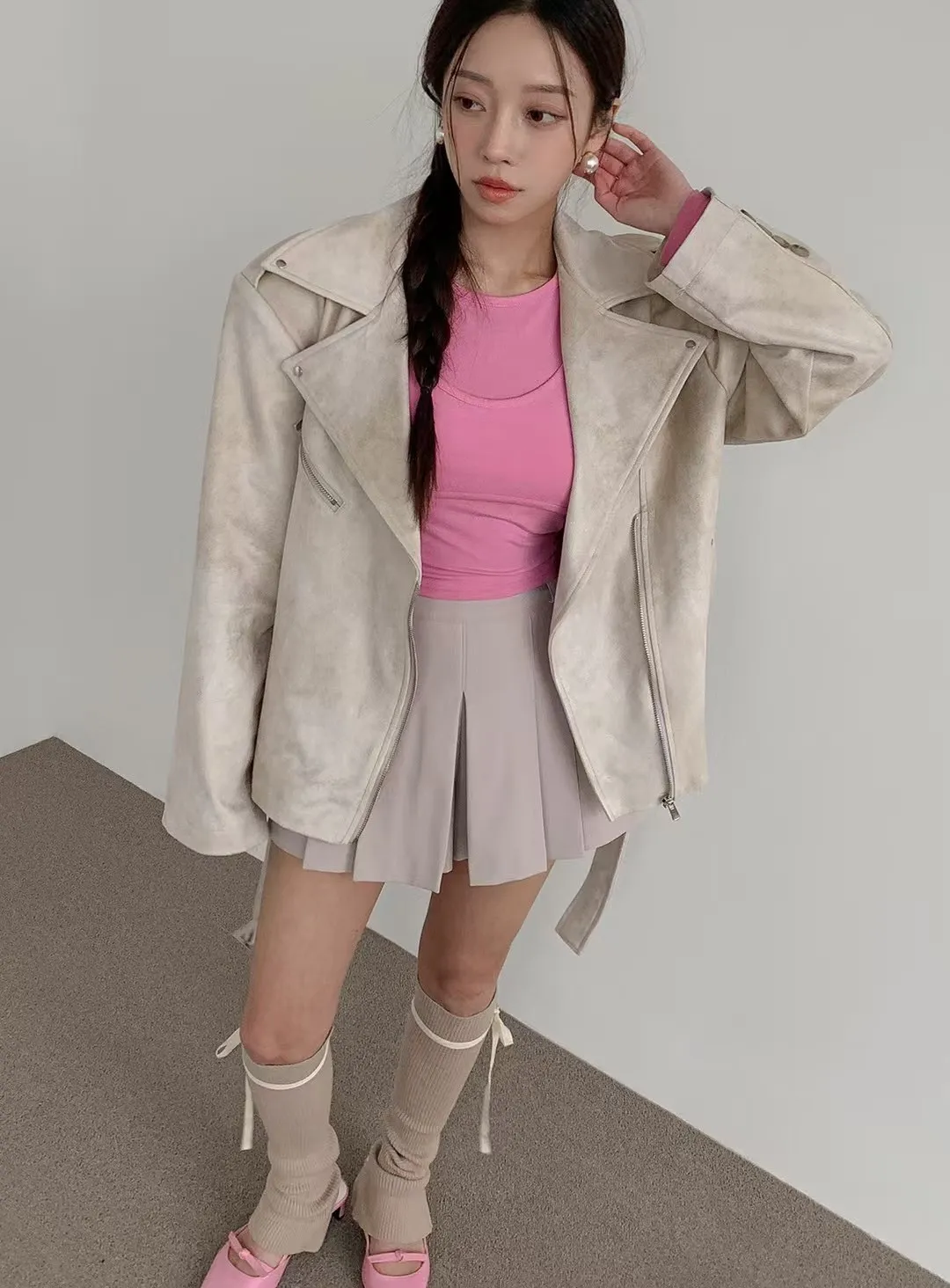 麂皮 柔軟面料 斜拉鍊穿脫 腰身款 有口袋 尺寸友善 暈染斑駁質感