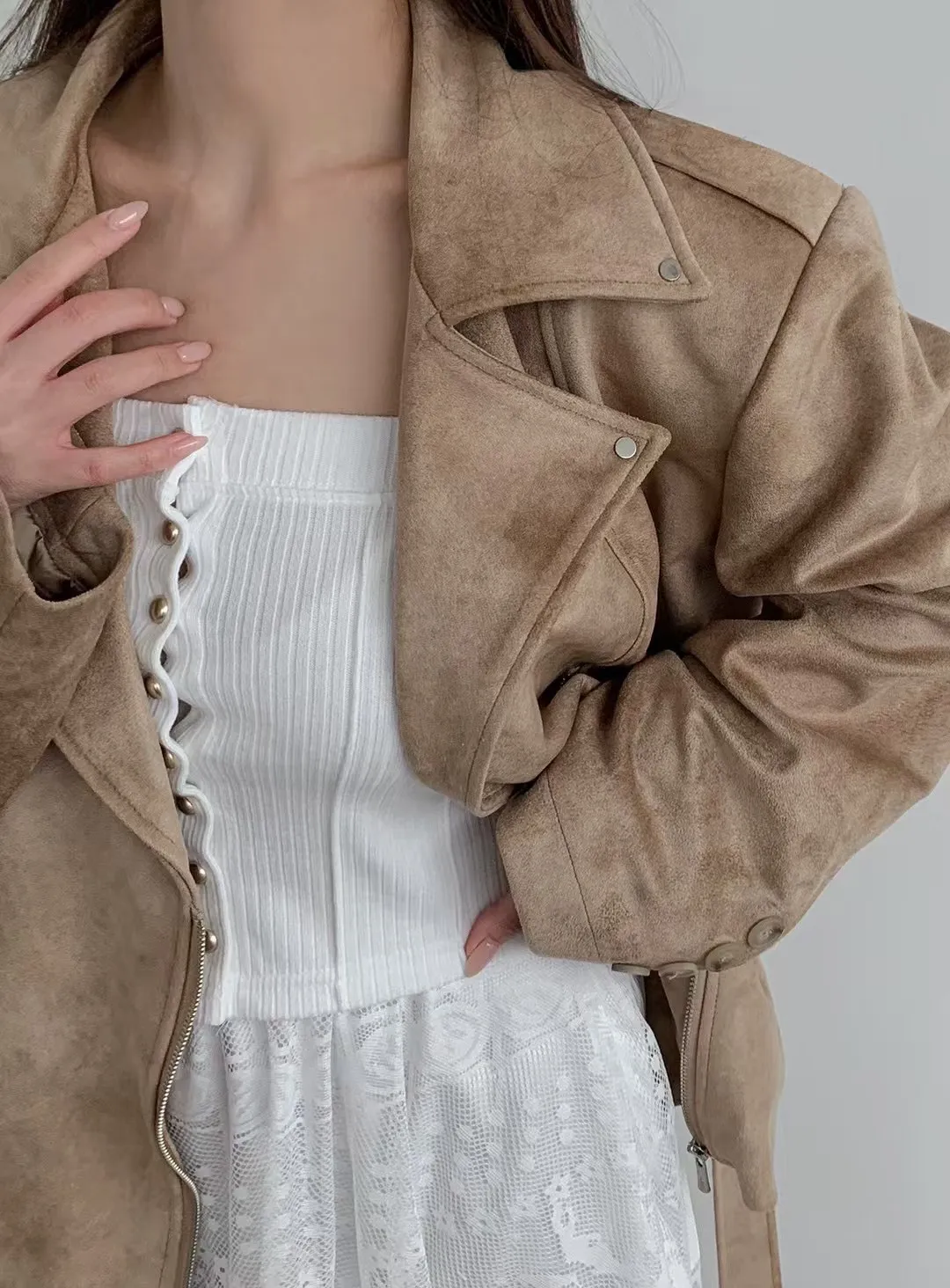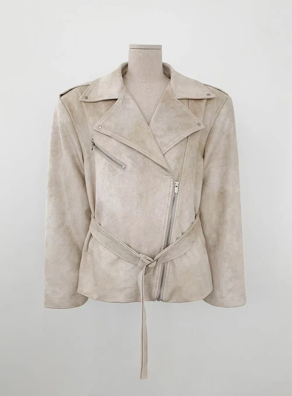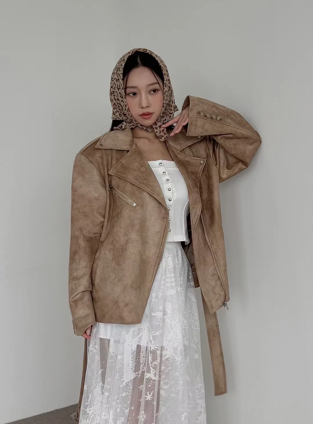 TW090潮流大翻領後腰綁帶麂皮外套 米 奶茶 官網價$2920 線上價$2890