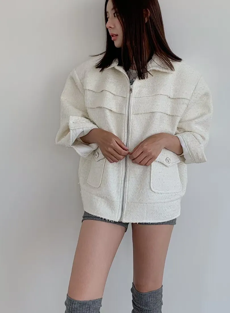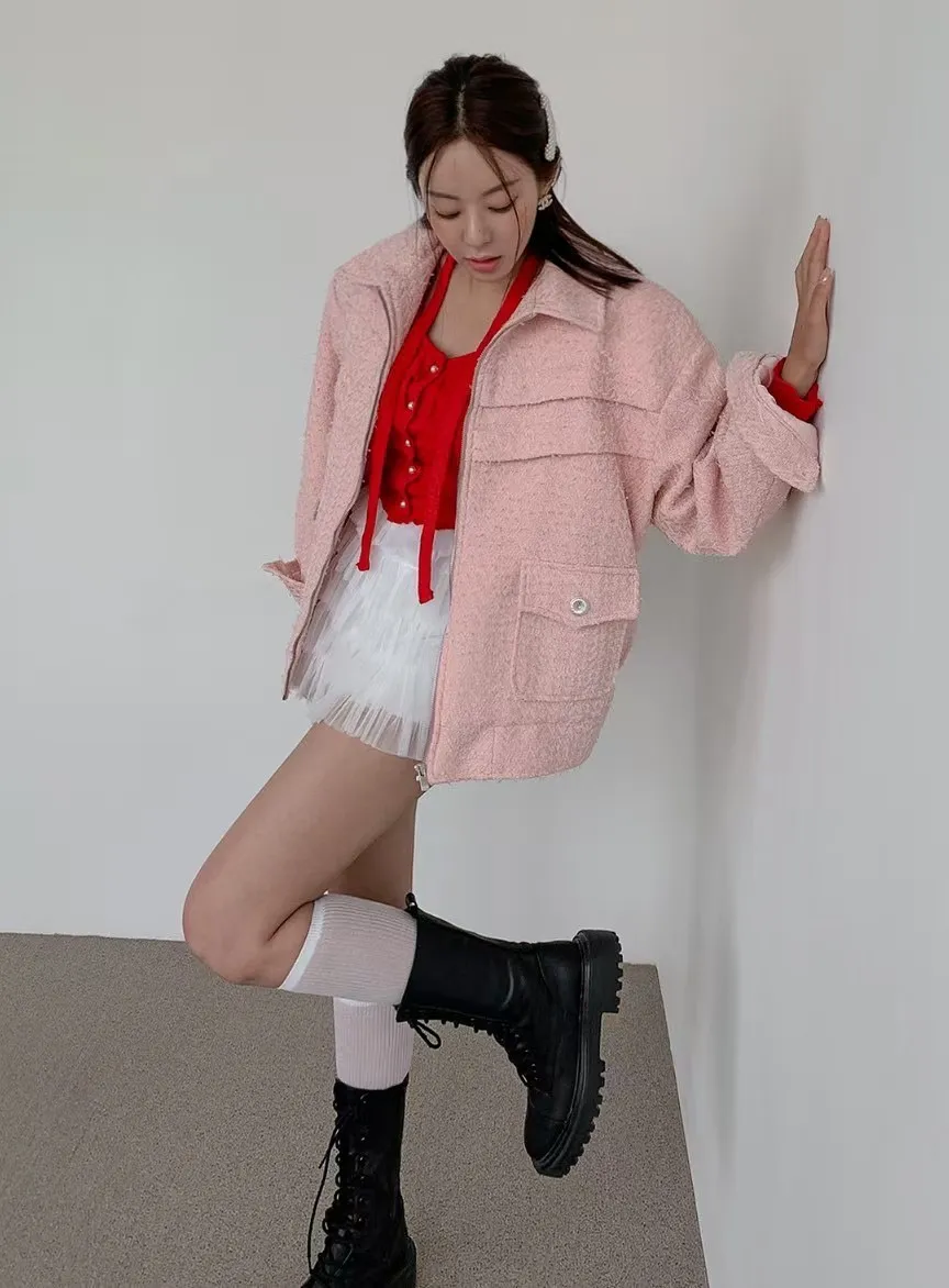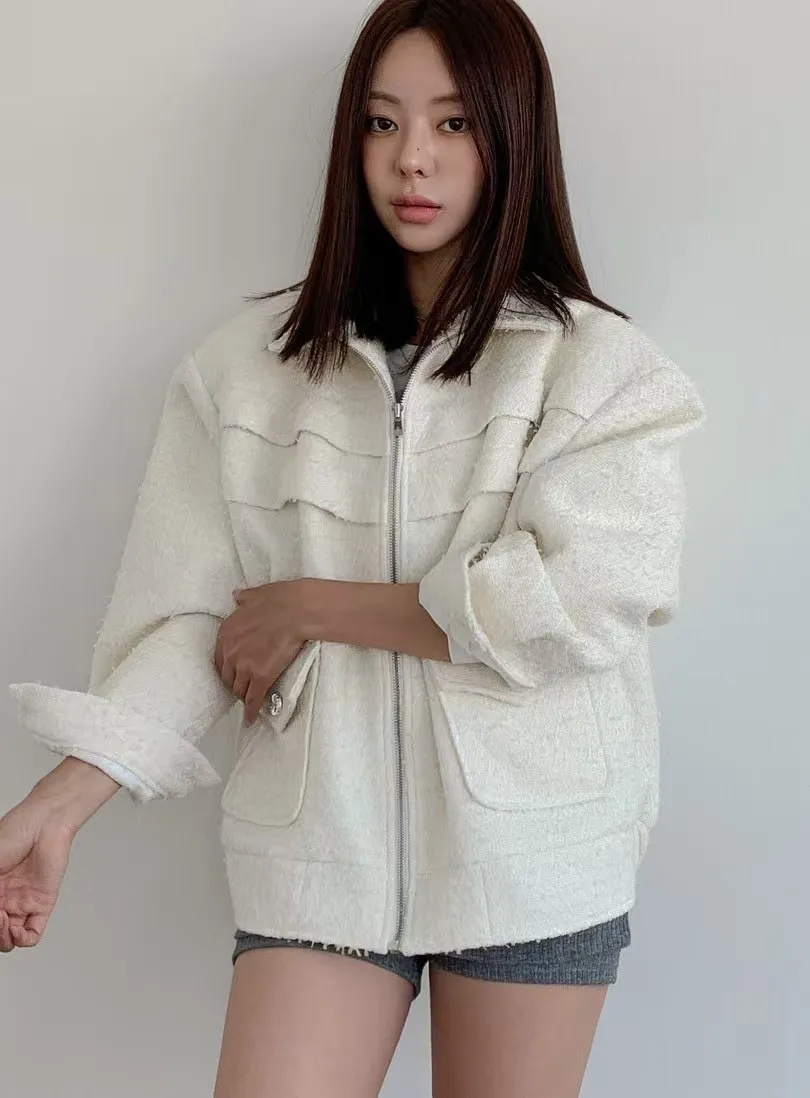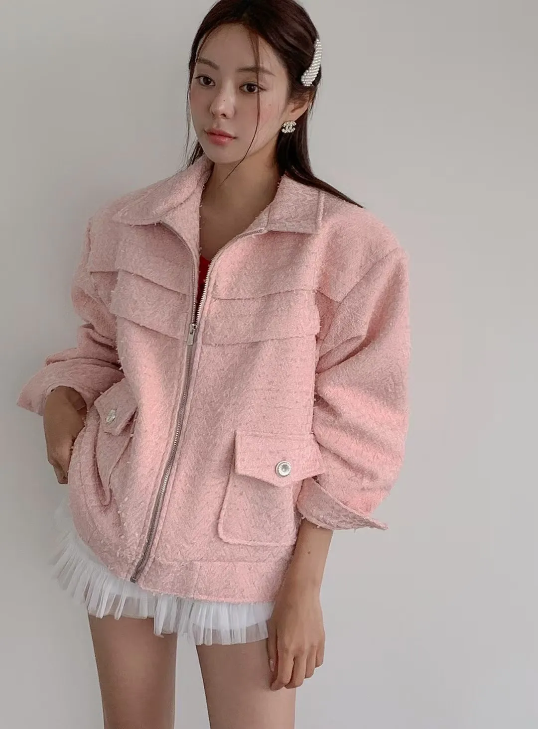 TW091休閒感小香風拉鍊外套 米 粉 官網價$3050 線上價$3020