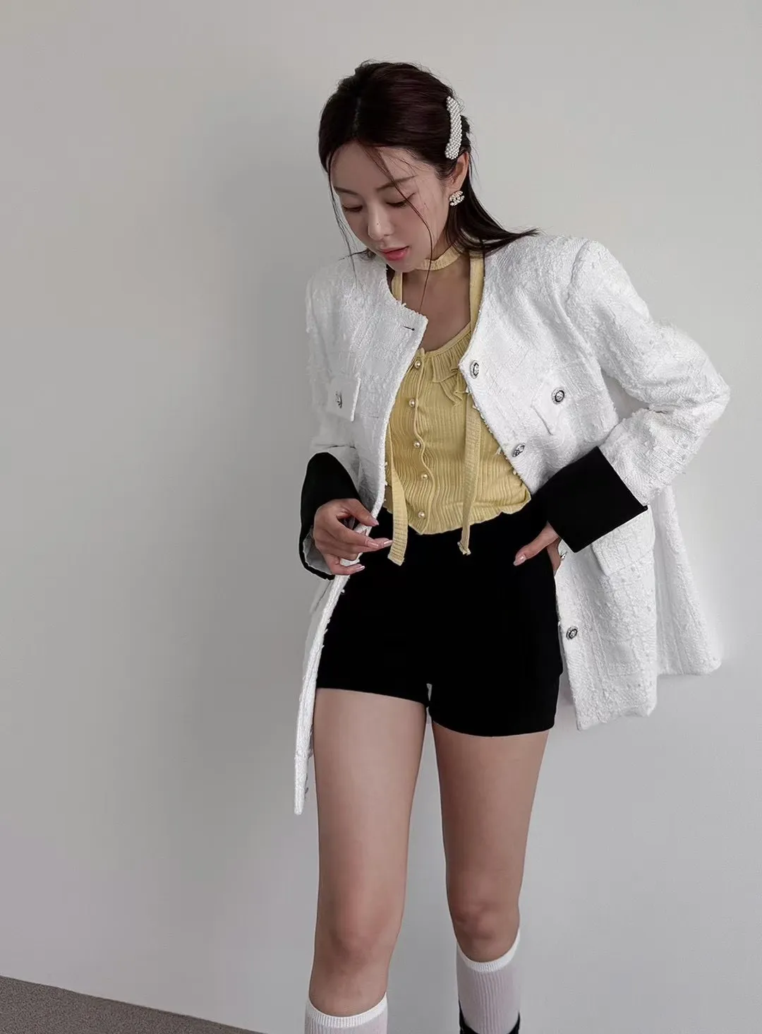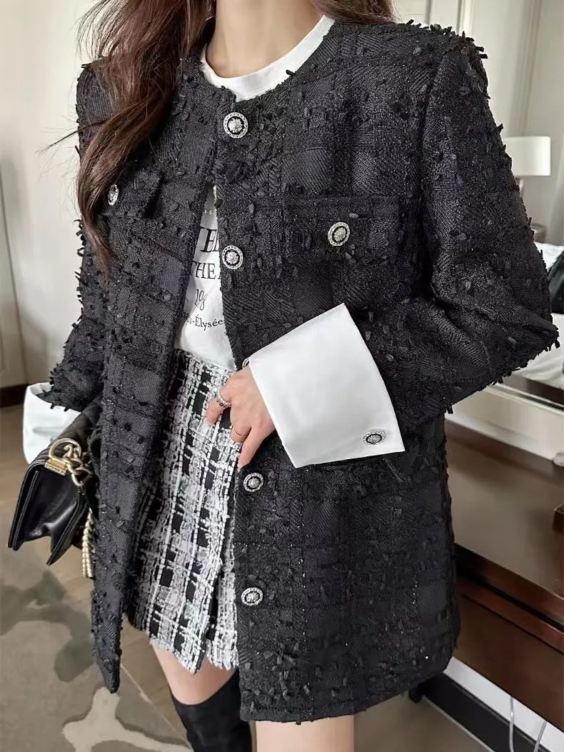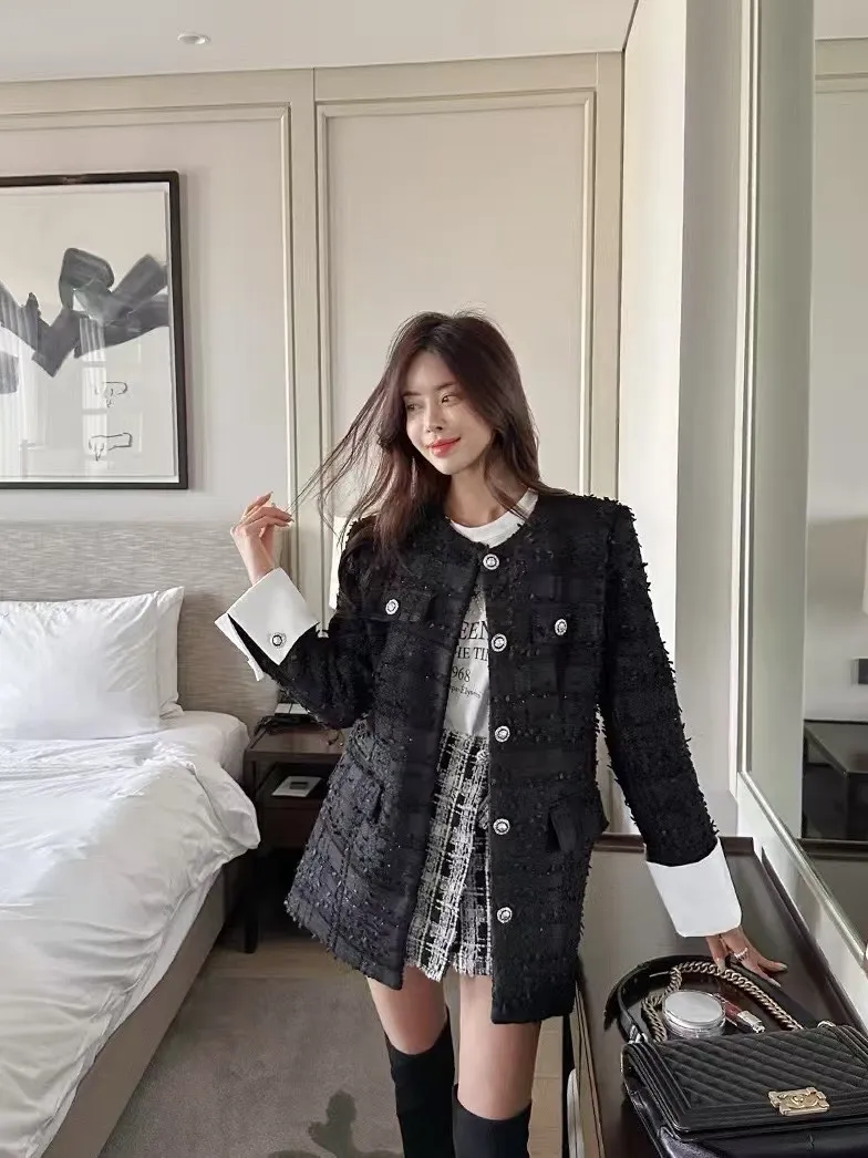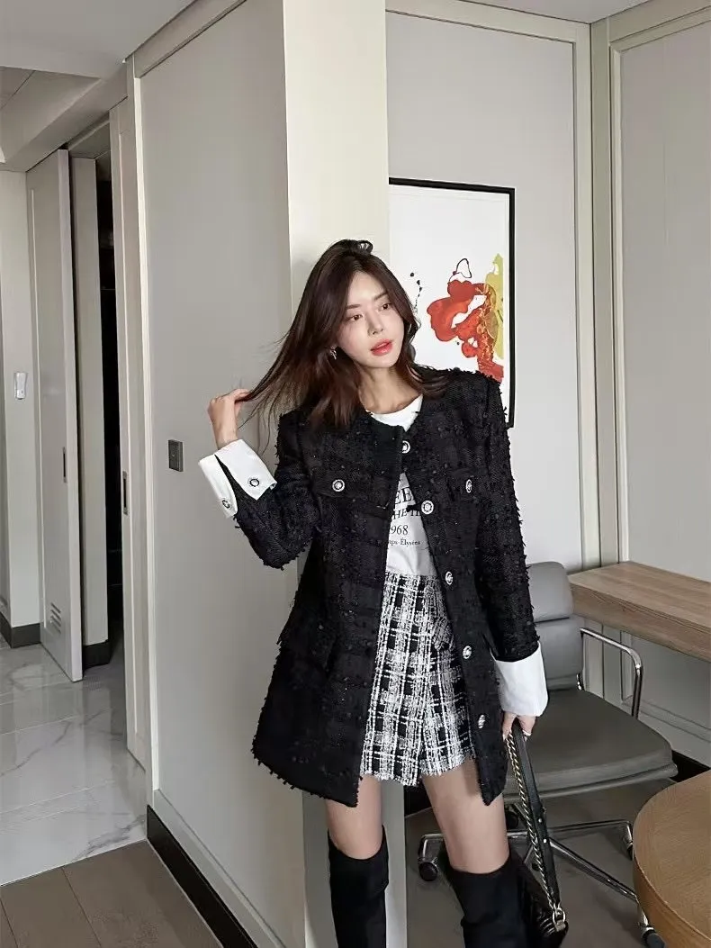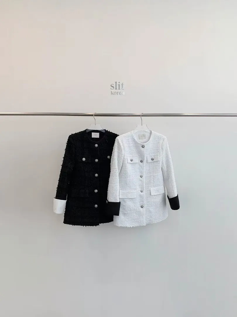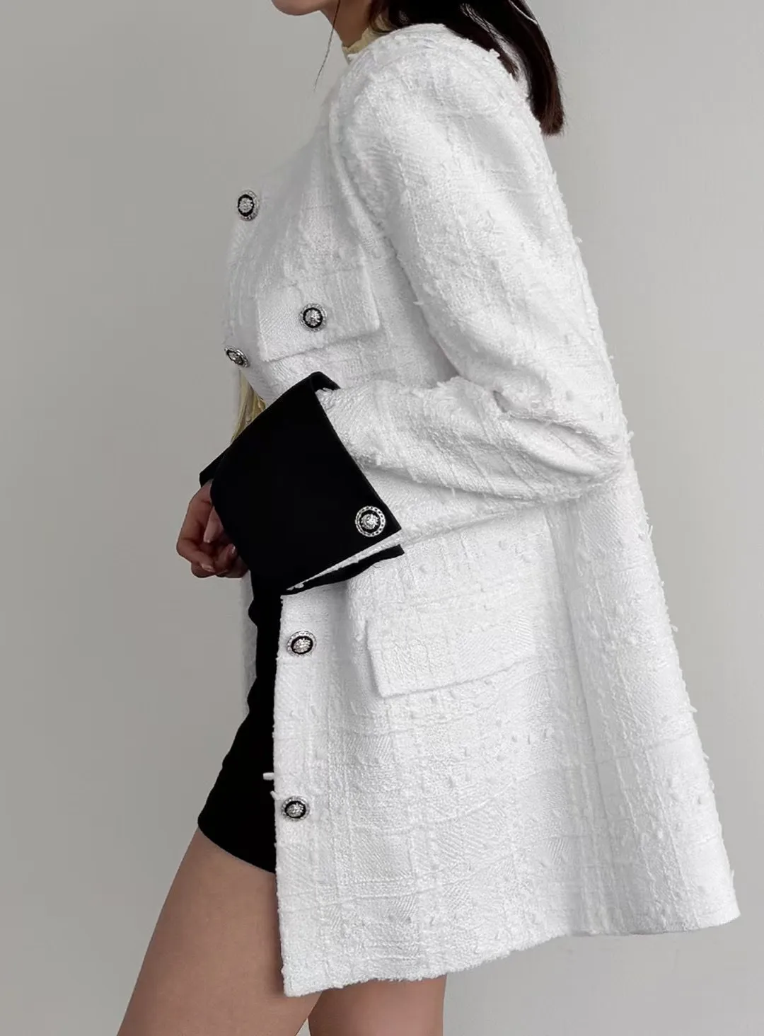 TW092貴氣小香風長版外套 白 黑 官網價$2890 線上價$2860
