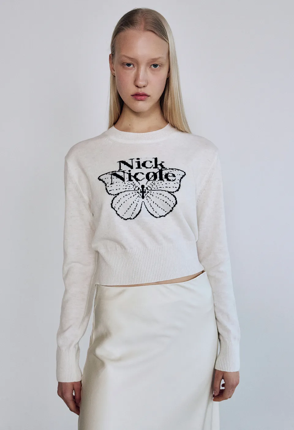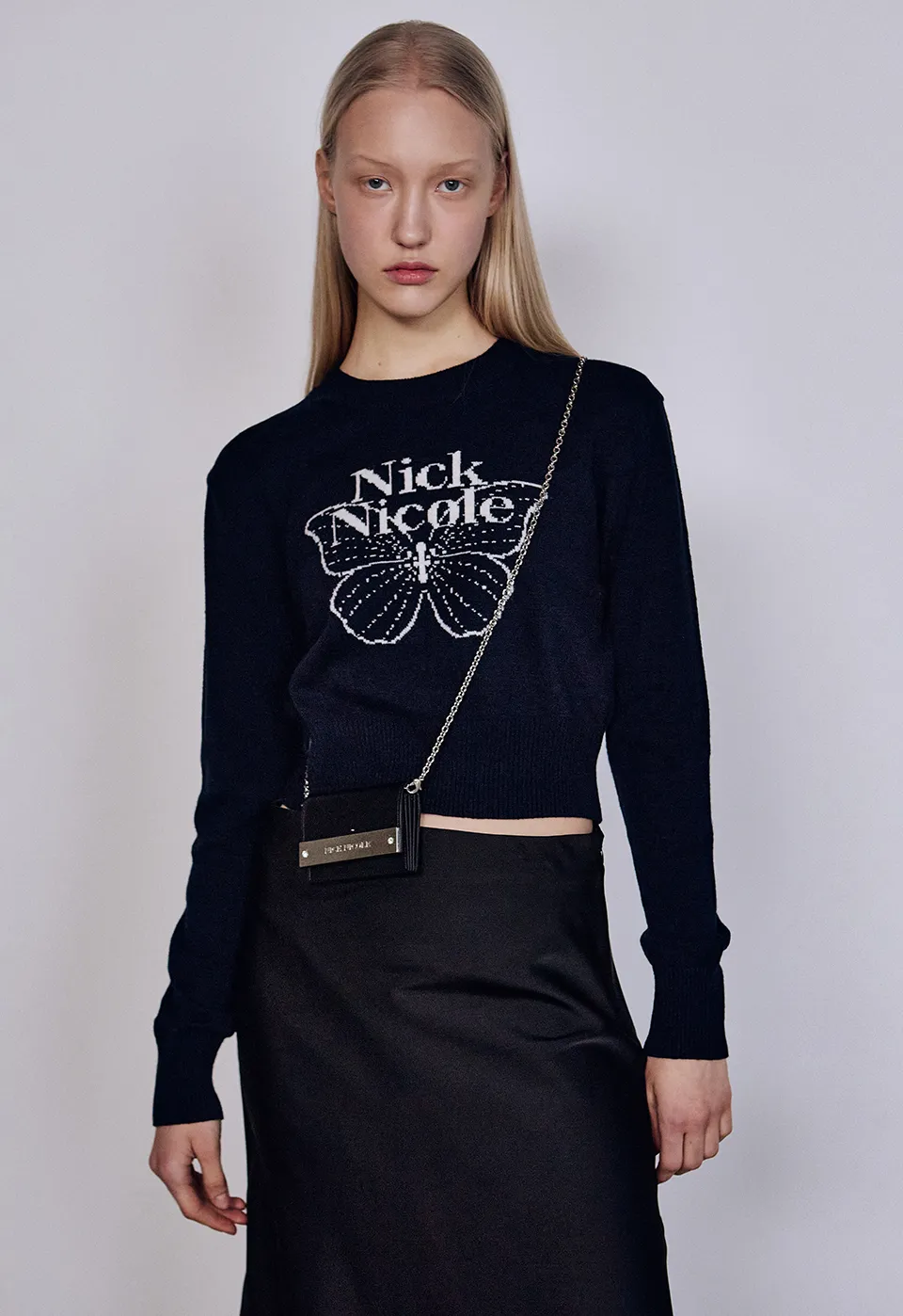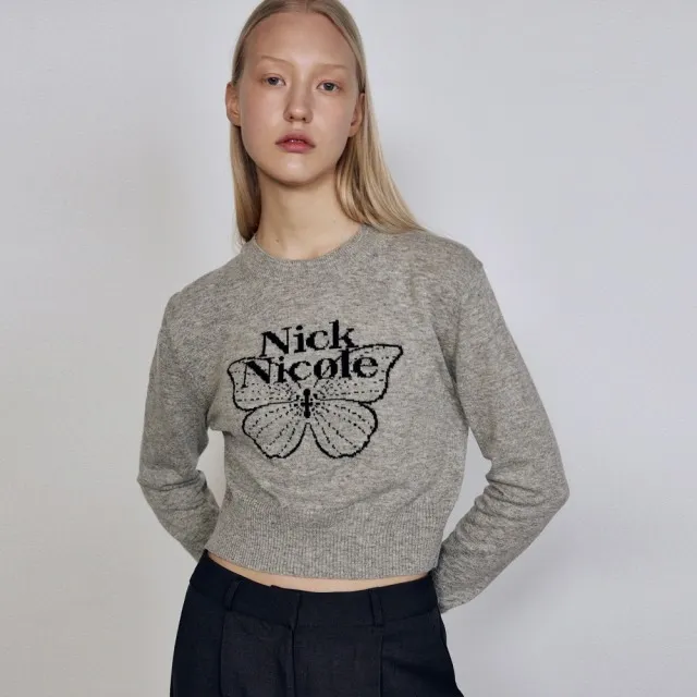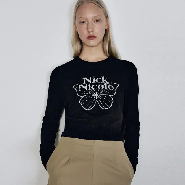 TW1013喀什米爾蝴蝶短版針織上衣 黑 灰 粉 白綠 白黑 淺藍 深藍 官網價$1890 永恆甜甜價 $1860