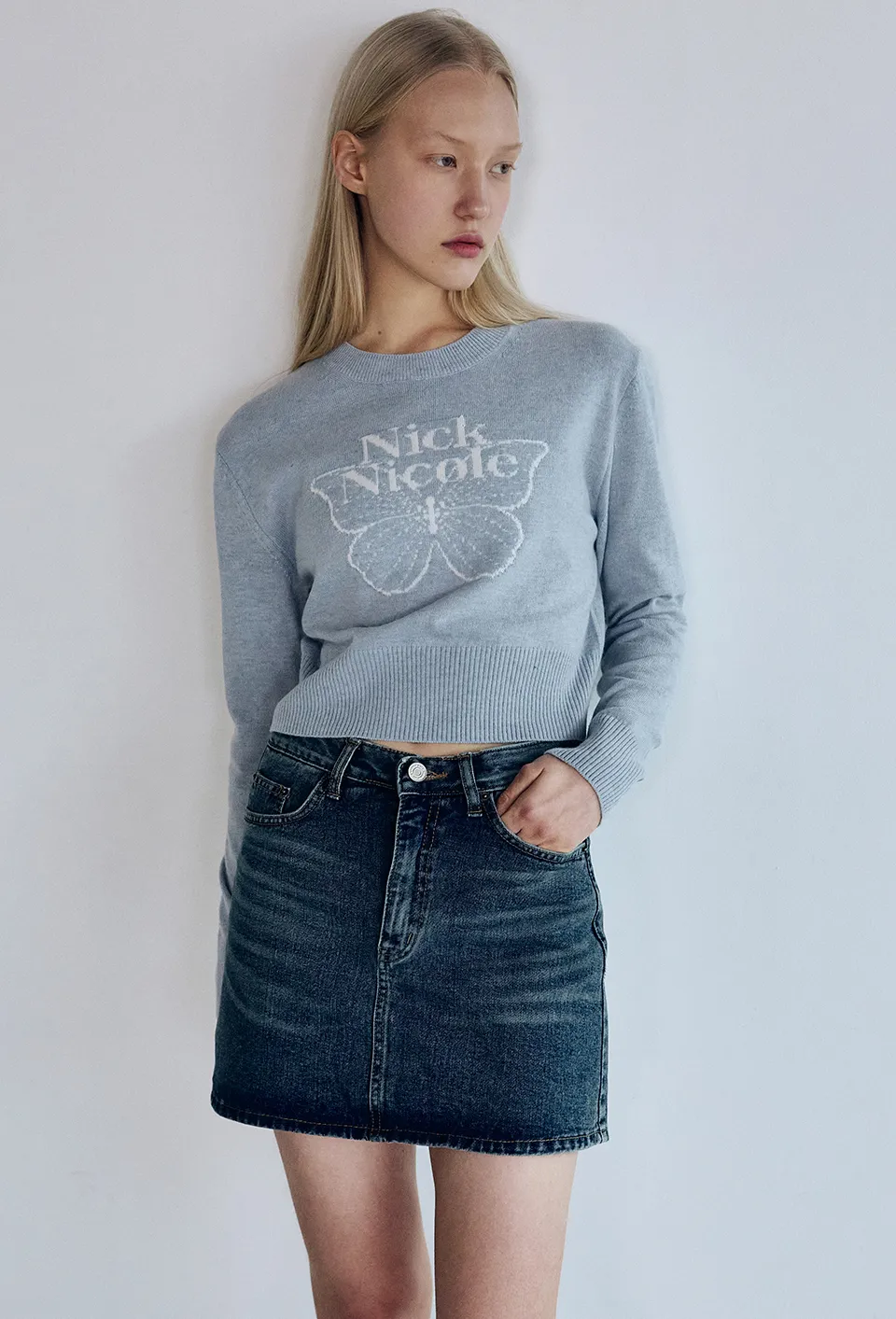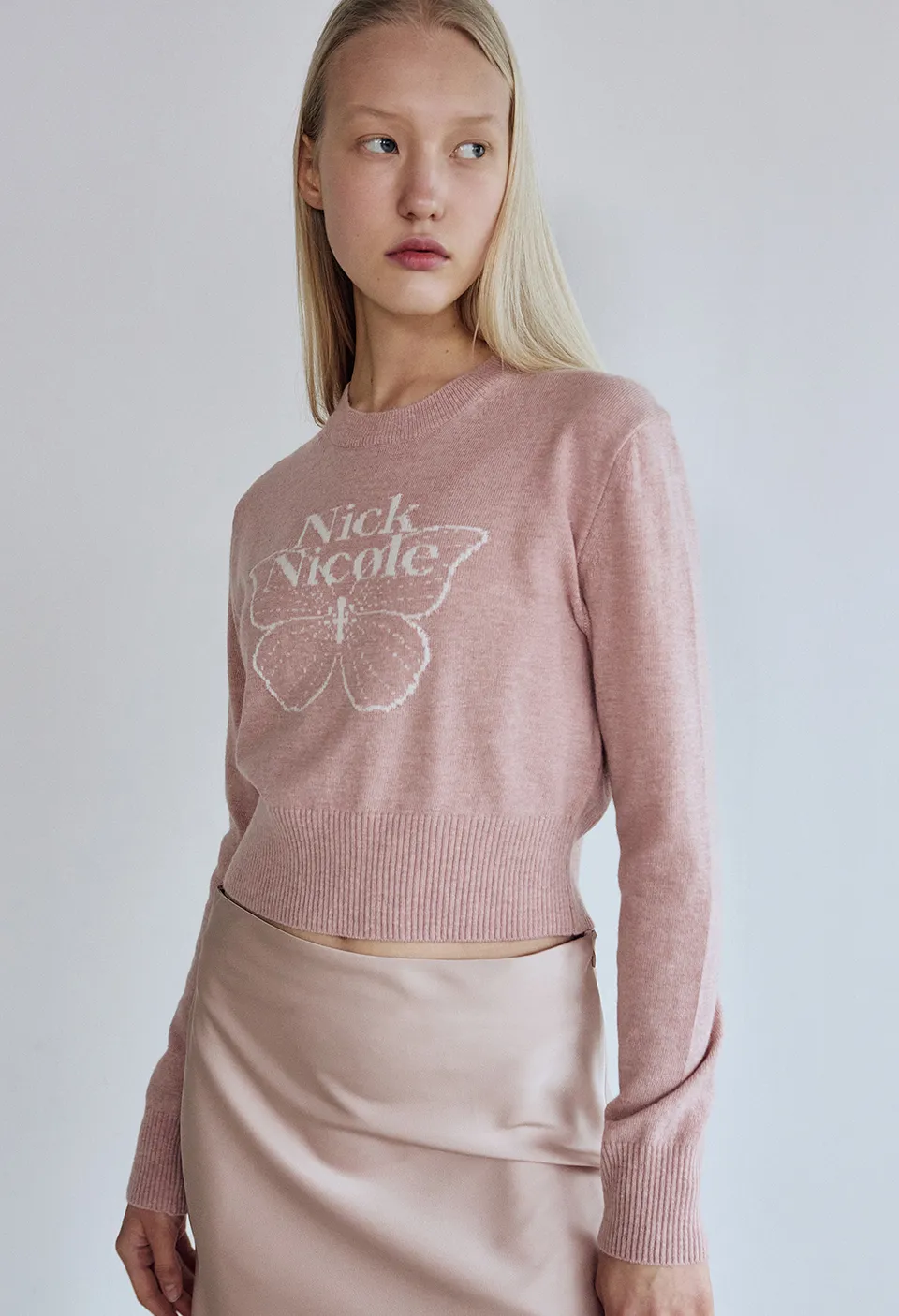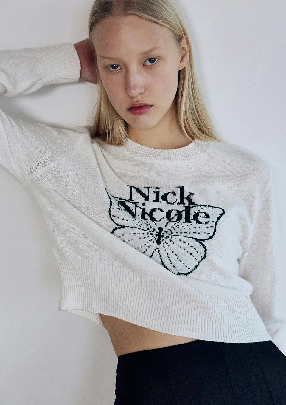 TW1013喀什米爾蝴蝶短版針織上衣 黑 灰 粉 白綠 白黑 淺藍 深藍 官網價$1890 永恆甜甜價 $1860