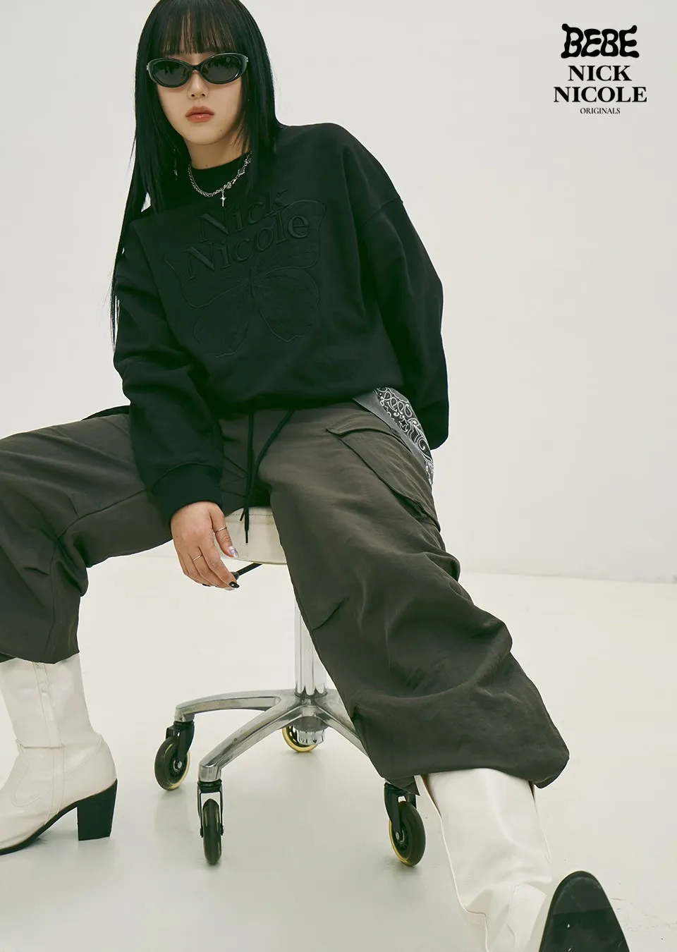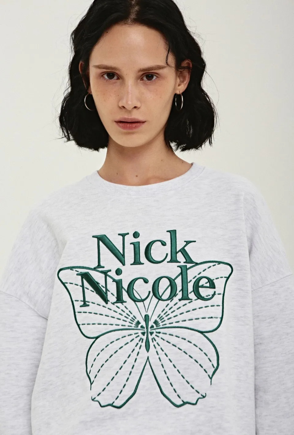 棉,刺繡英文蝴蝶,內襯親膚舒適 燕麥的字體是黑色