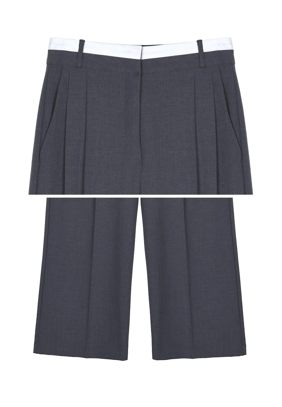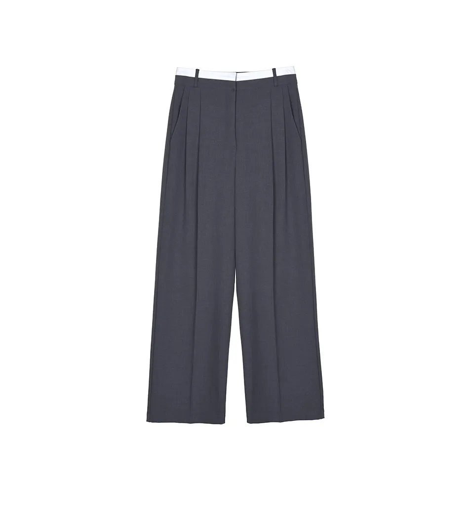 西裝面料 涼感舒適 跳色白褲頭 垂墜感顯腿長 有口袋