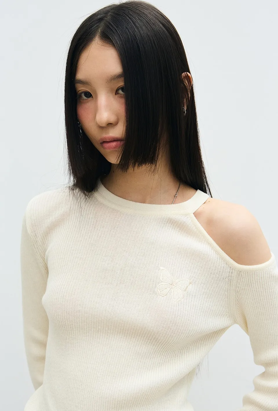 蝴蝶刺繡點綴, 剪裁展現幹練的感覺。