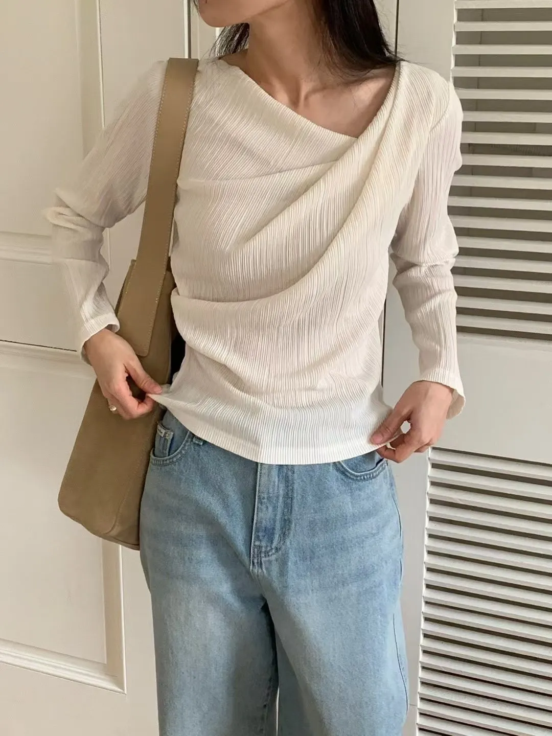 聚酯+彈力 立體領口 細緻束紋 自然垂墜 不易皺面料