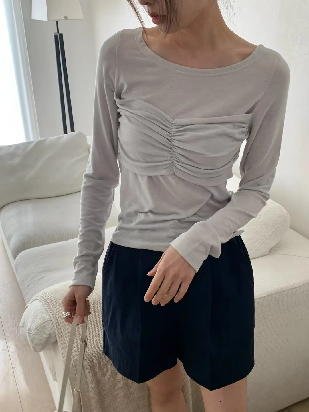 天絲+聚酯+彈力 舒適鎖骨寬領 很薄款 軟綿觸感 有彈性