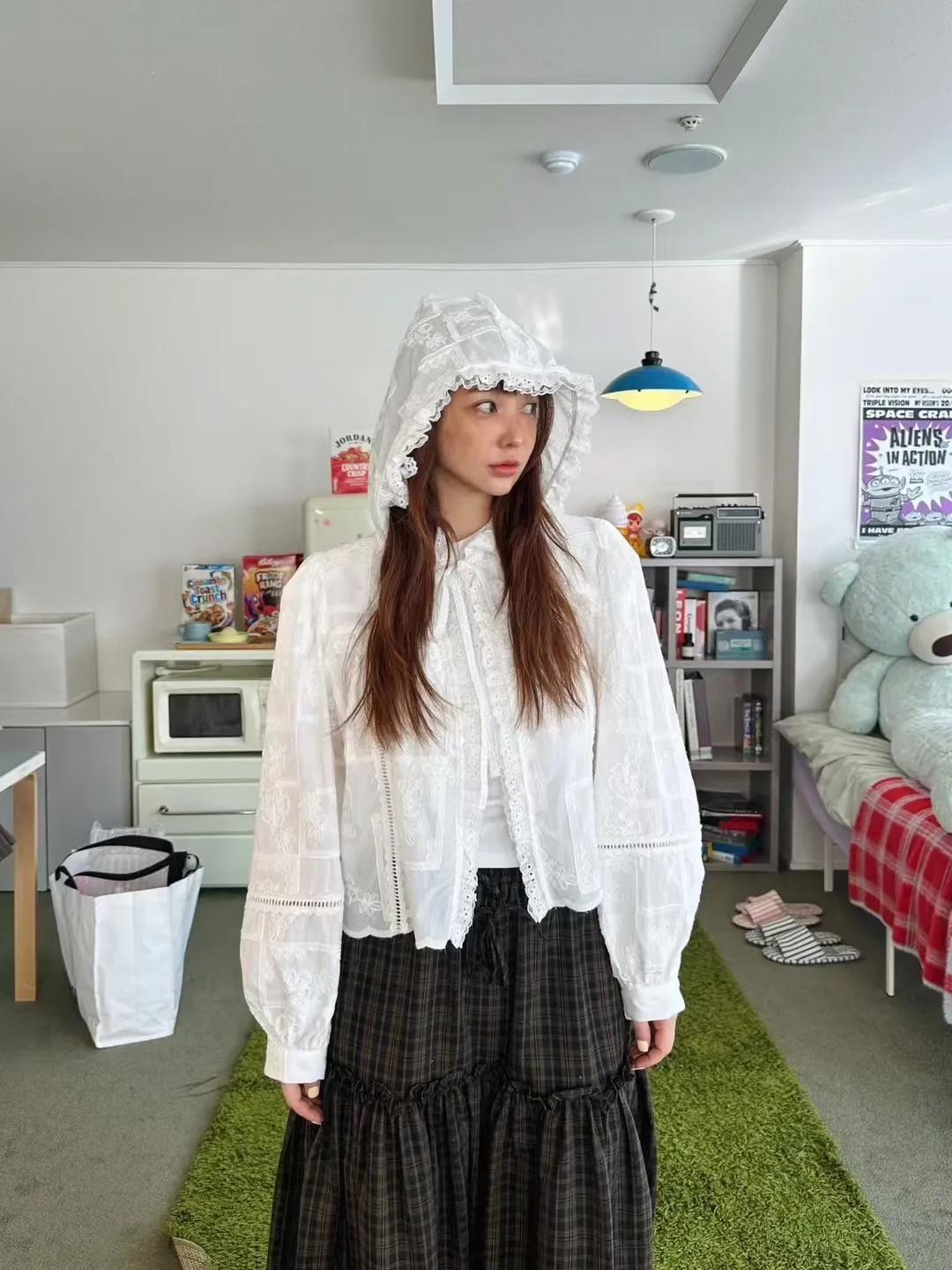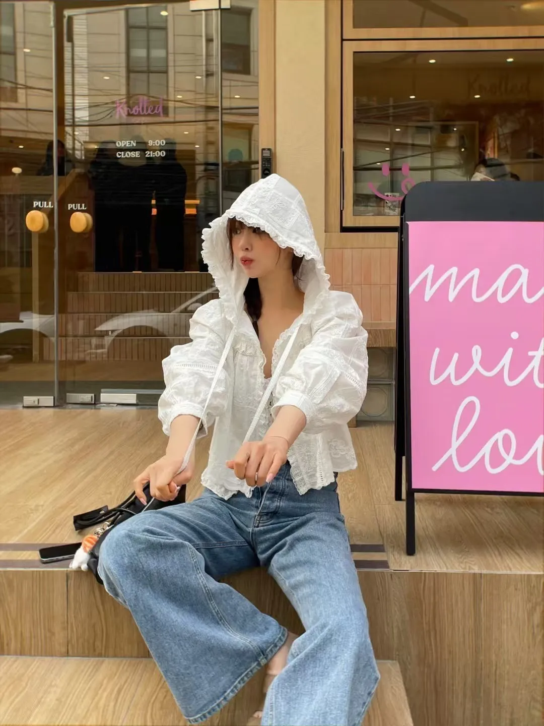 棉 整件柔軟精緻蕾絲 胸綁帶穿脫 連帽設計