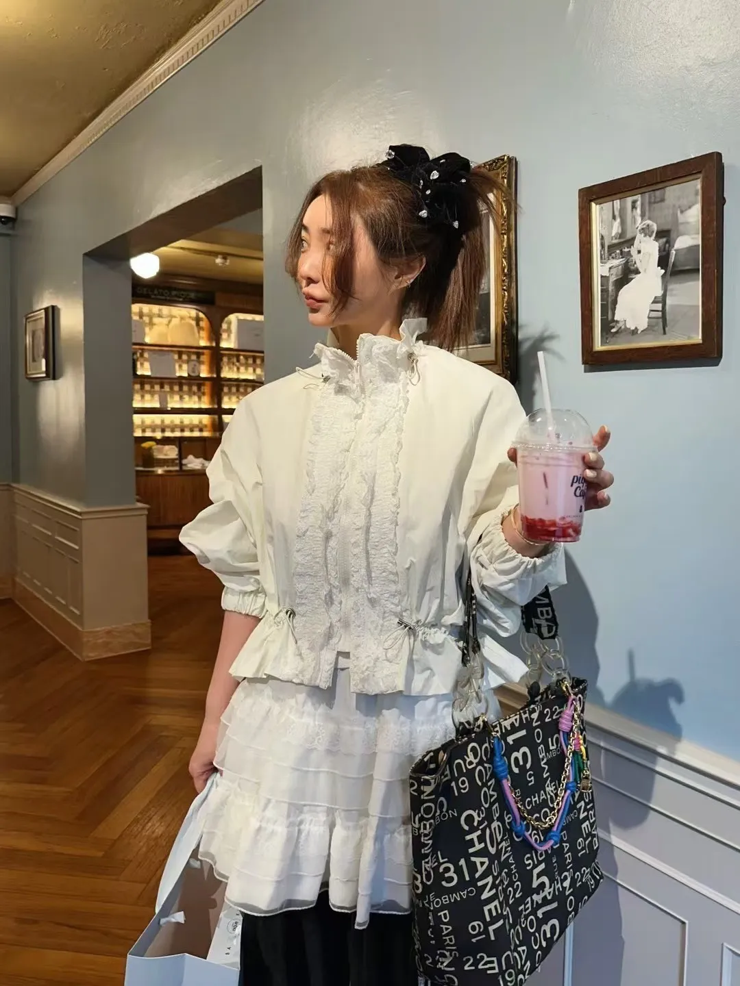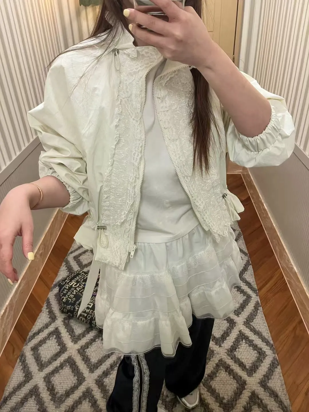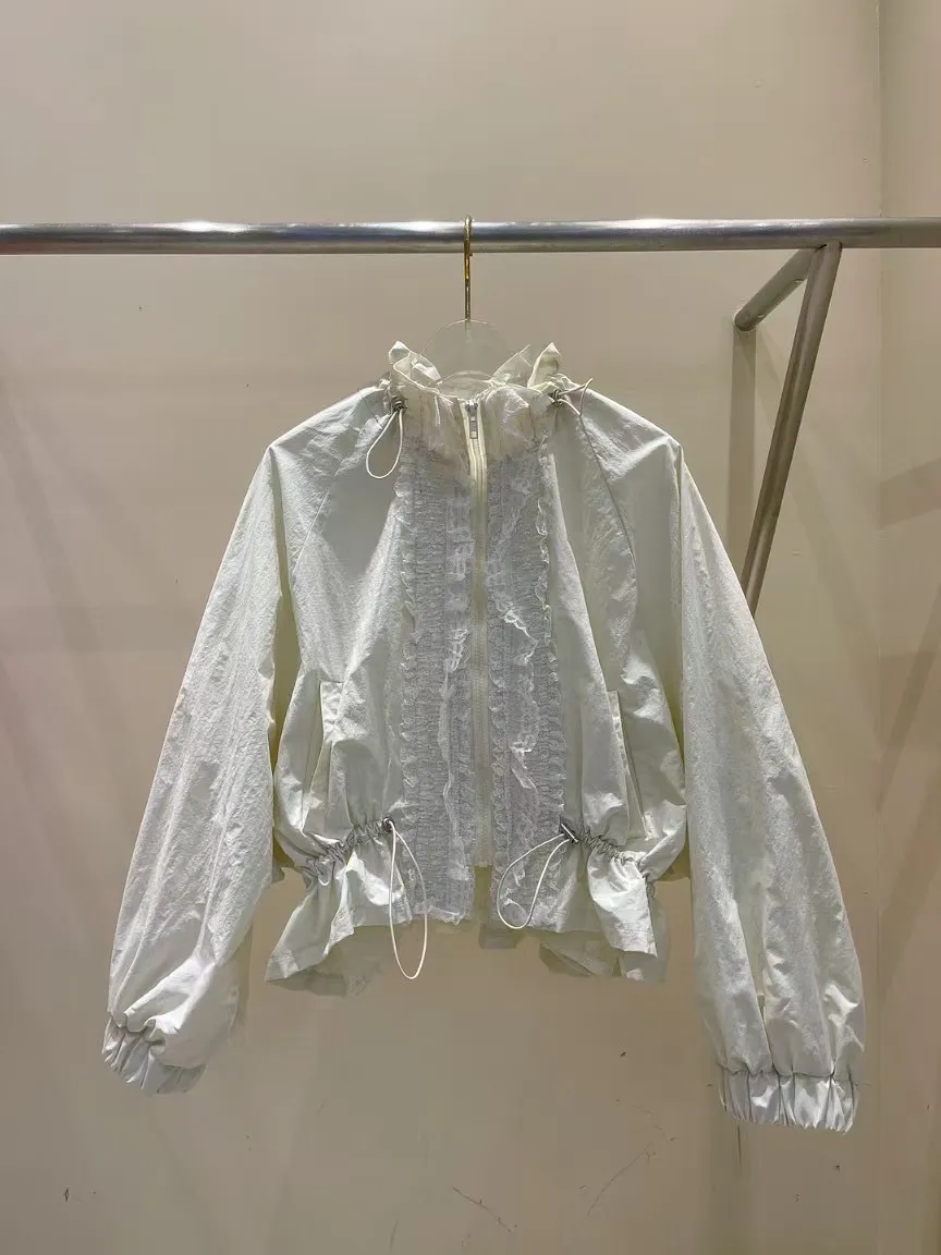 棉+聚酯 細腰抽繩 柔軟蕾絲內裡 拉鍊穿脫 手袖彈性 XL友善