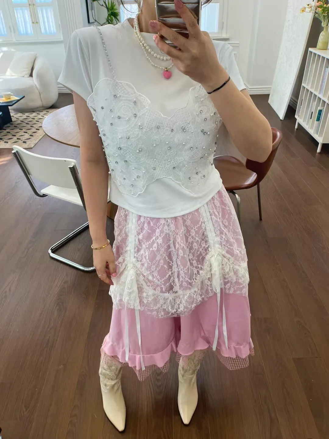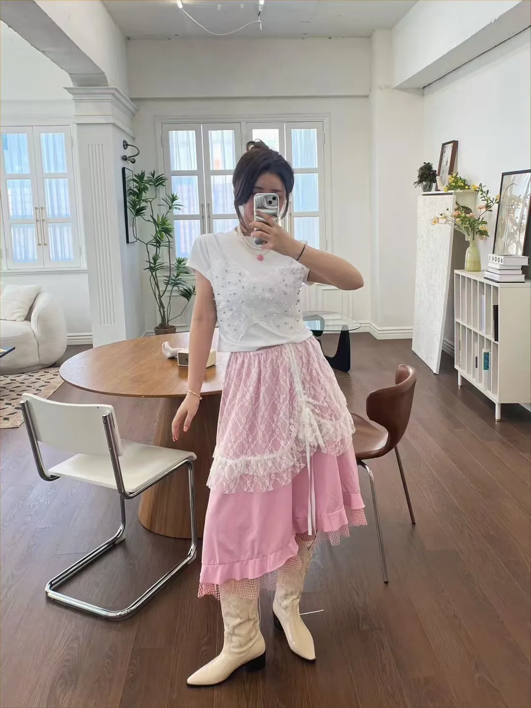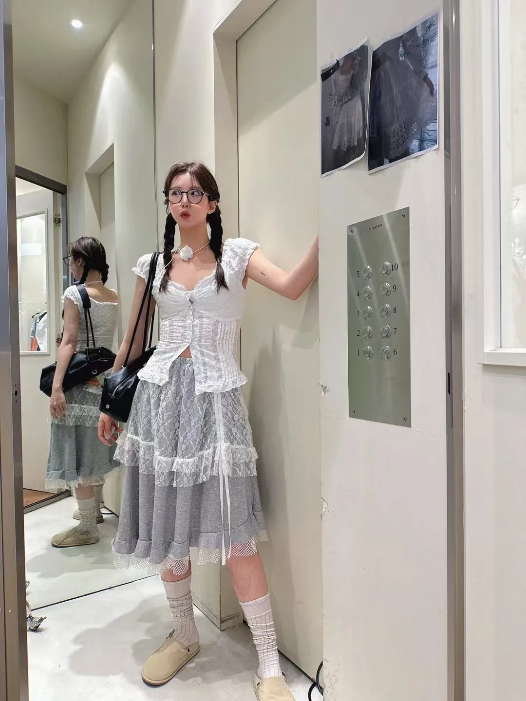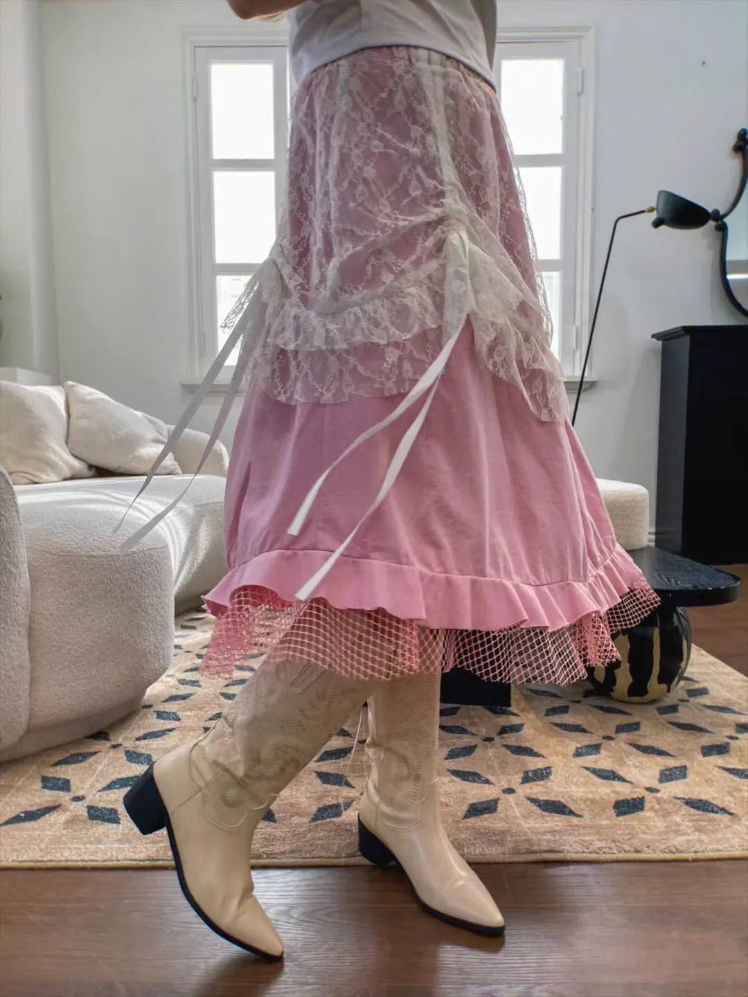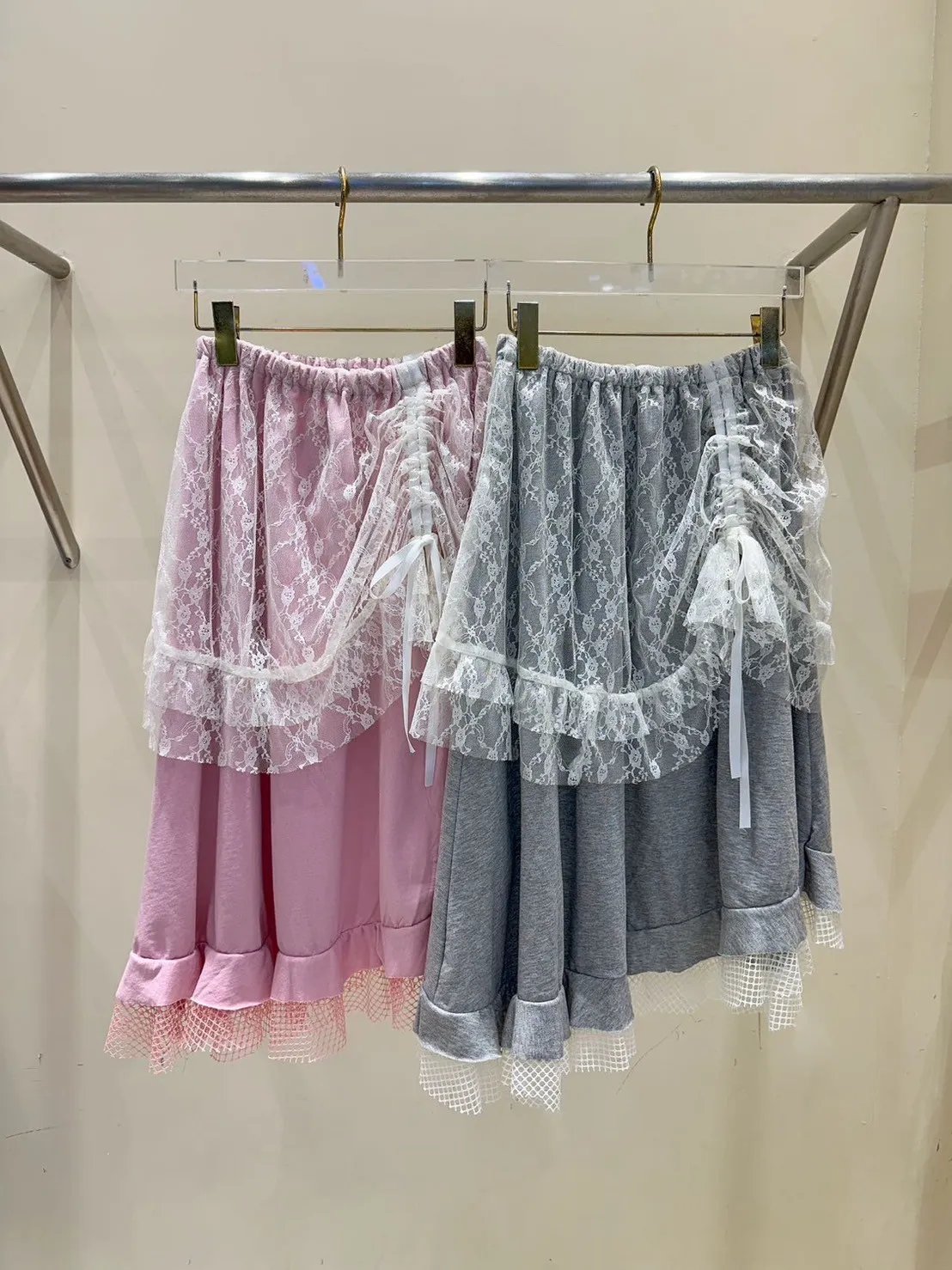 棉 精緻蕾絲 荷葉下擺層次網紗 全腰鬆緊 薄款夏天可 XXL友善