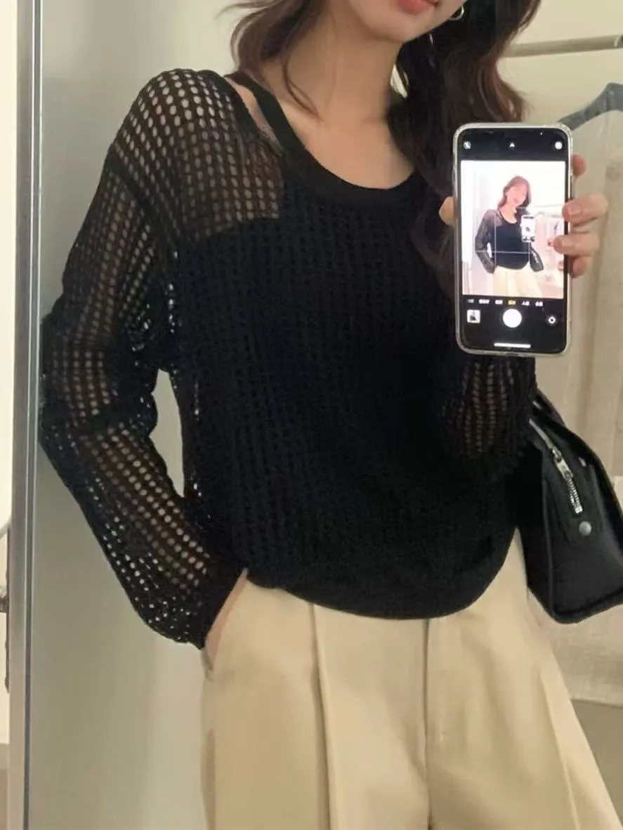 棉 透氣舒適 無毛感 網洞簍空 可斜肩