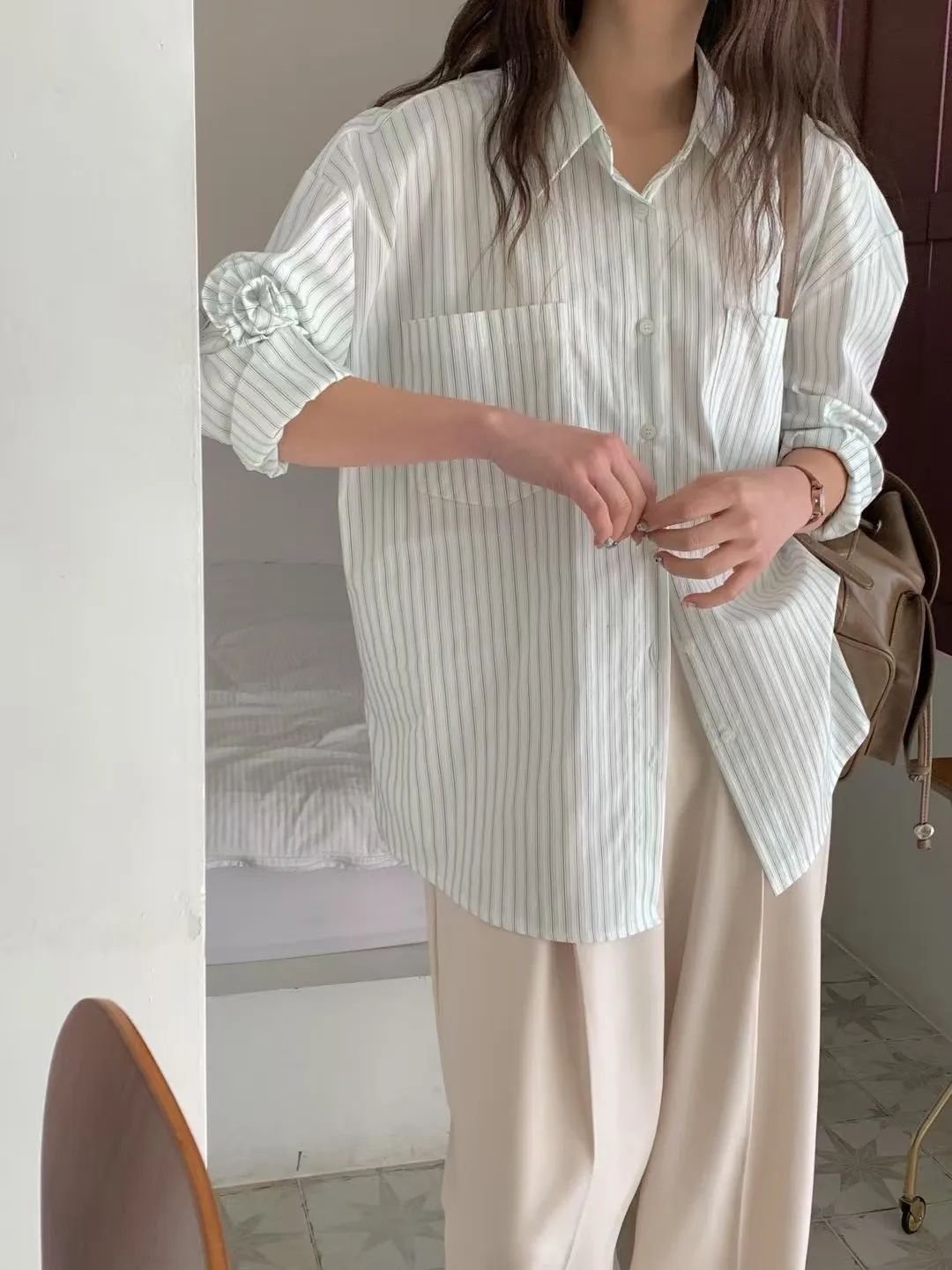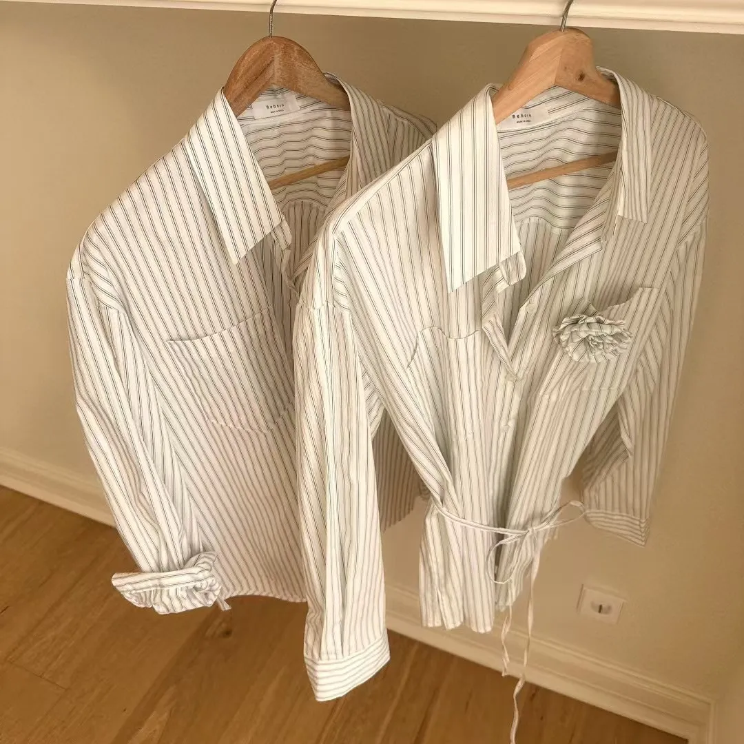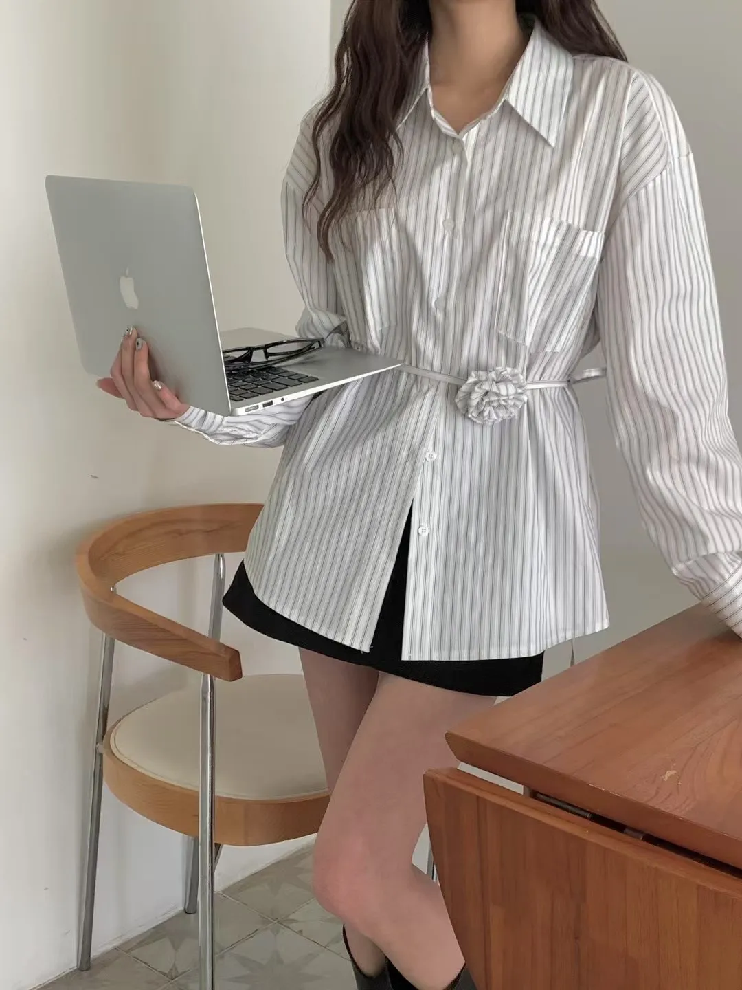 棉 腰綁帶 玫瑰花是別針 胸前雙口袋