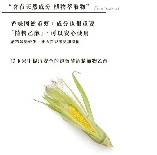 天然植物萃取物,使用植物乙醇乾淨溫順。