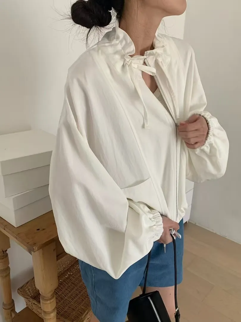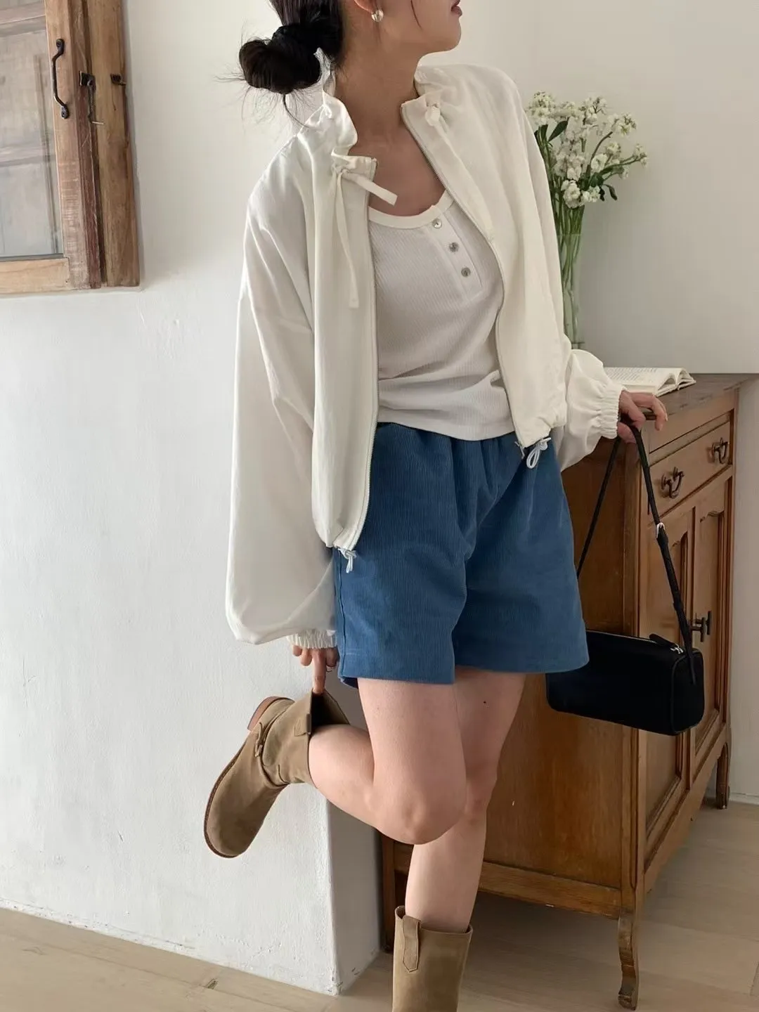 聚酯 有網紗內裡散熱 拉鍊穿脫 下擺領口抽繩 手袖鬆緊