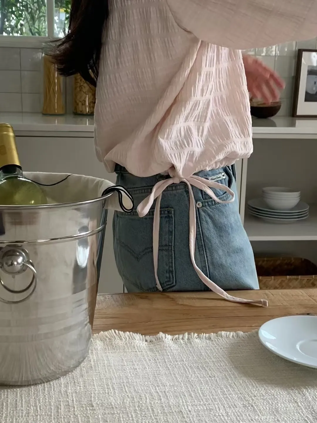人造絲+聚酯 精緻微皺 直接穿脫 側腰綁繩