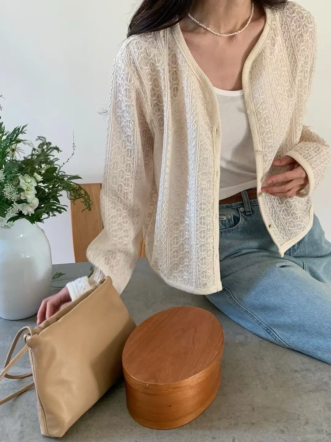 棉+聚酯 薄款透光 釦子穿脫 網紗立體棉線