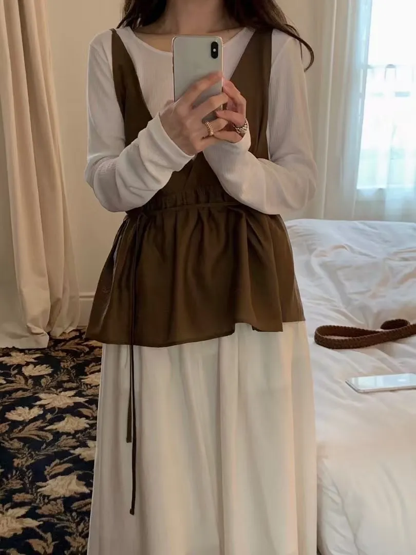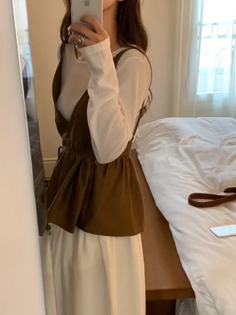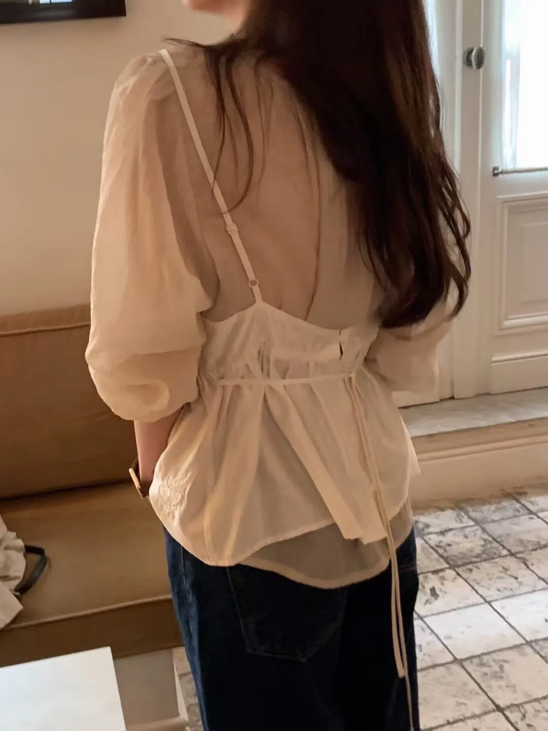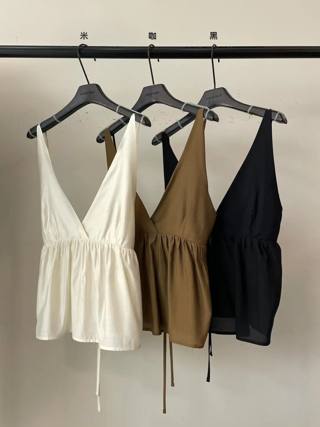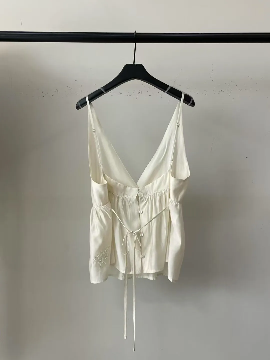 天絲90%+聚酯 天絲光澤感 下擺隱約刺繡 美背綁帶 可調肩帶