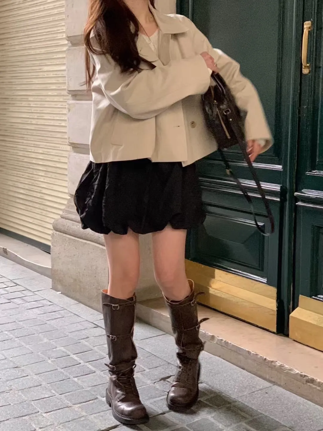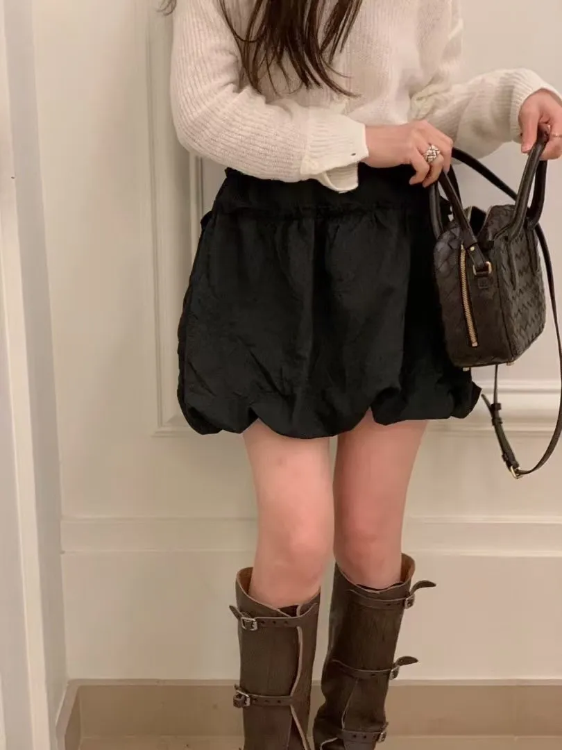 尼龍 腰有彈性 自然皺褶面料 輕盈舒適 無口袋 穿到小L