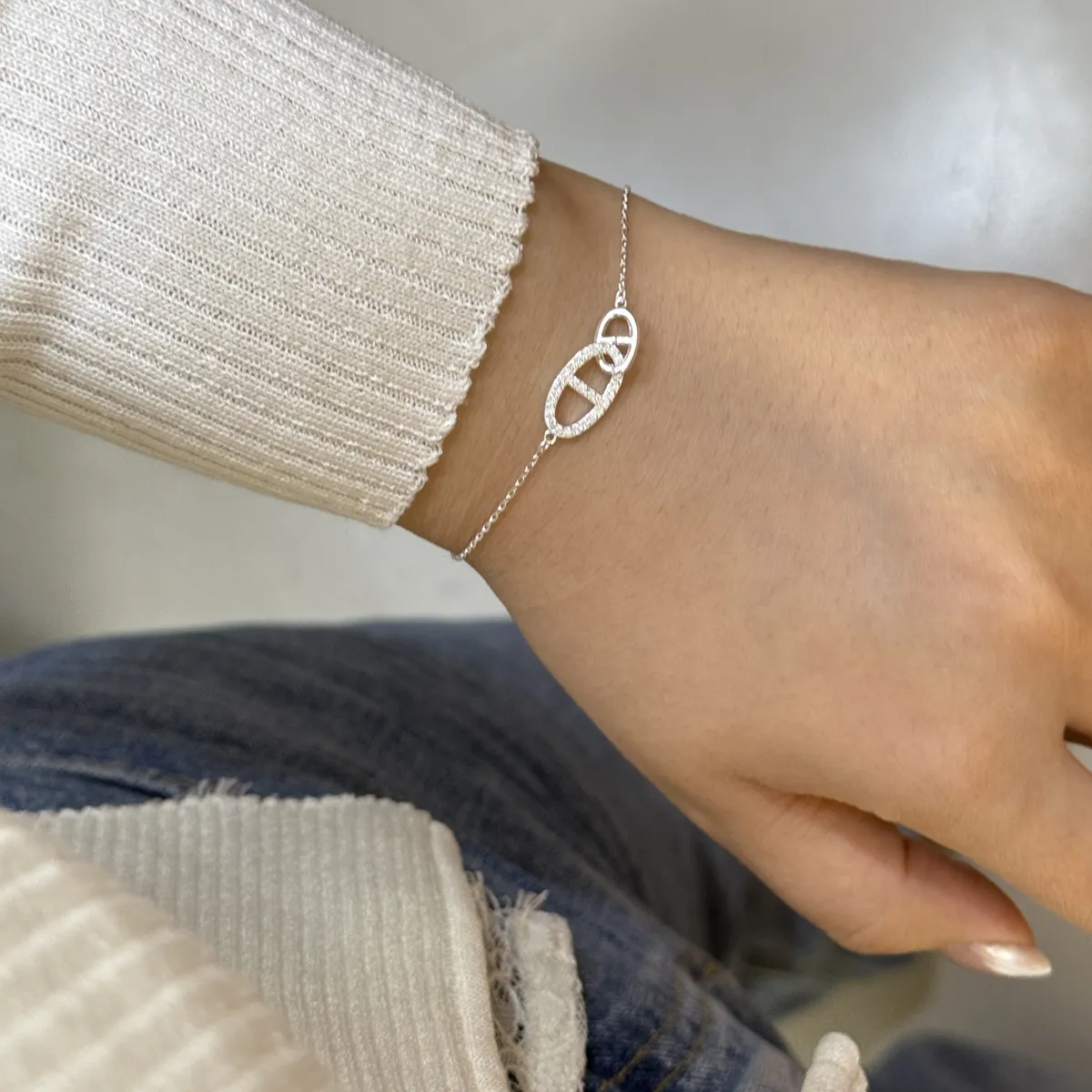 TW557鑲鑽雙豬鼻純銀925手鍊