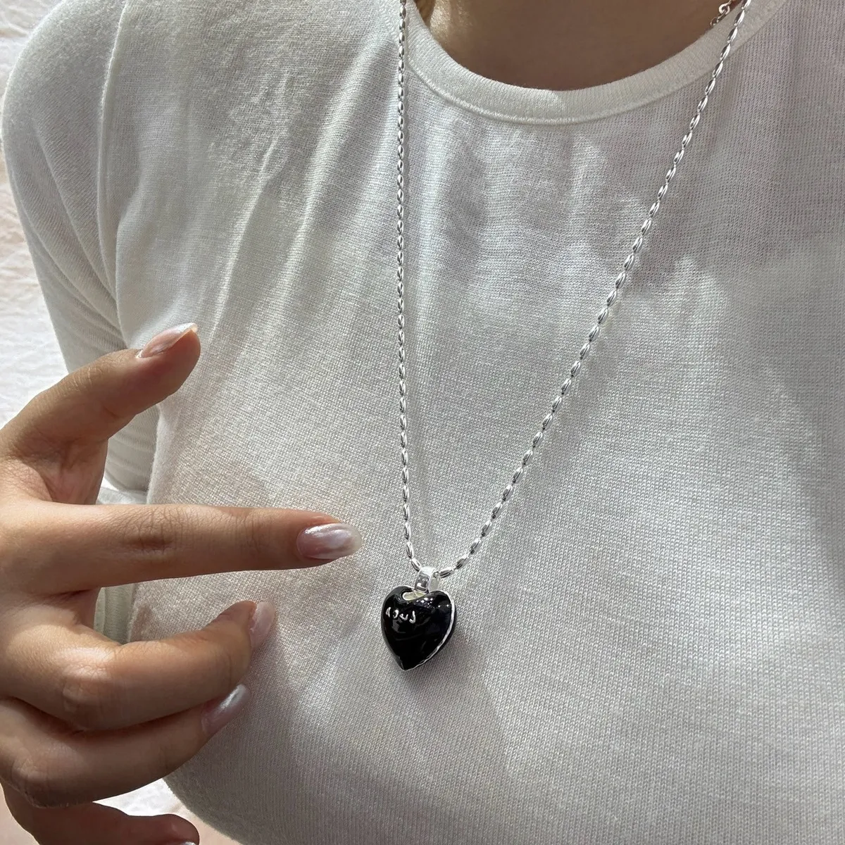 TW609單顆黑色愛心純銀925項鍊 官網價$1650 線上價$1630
