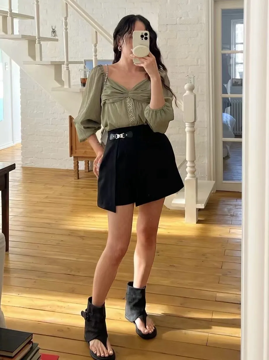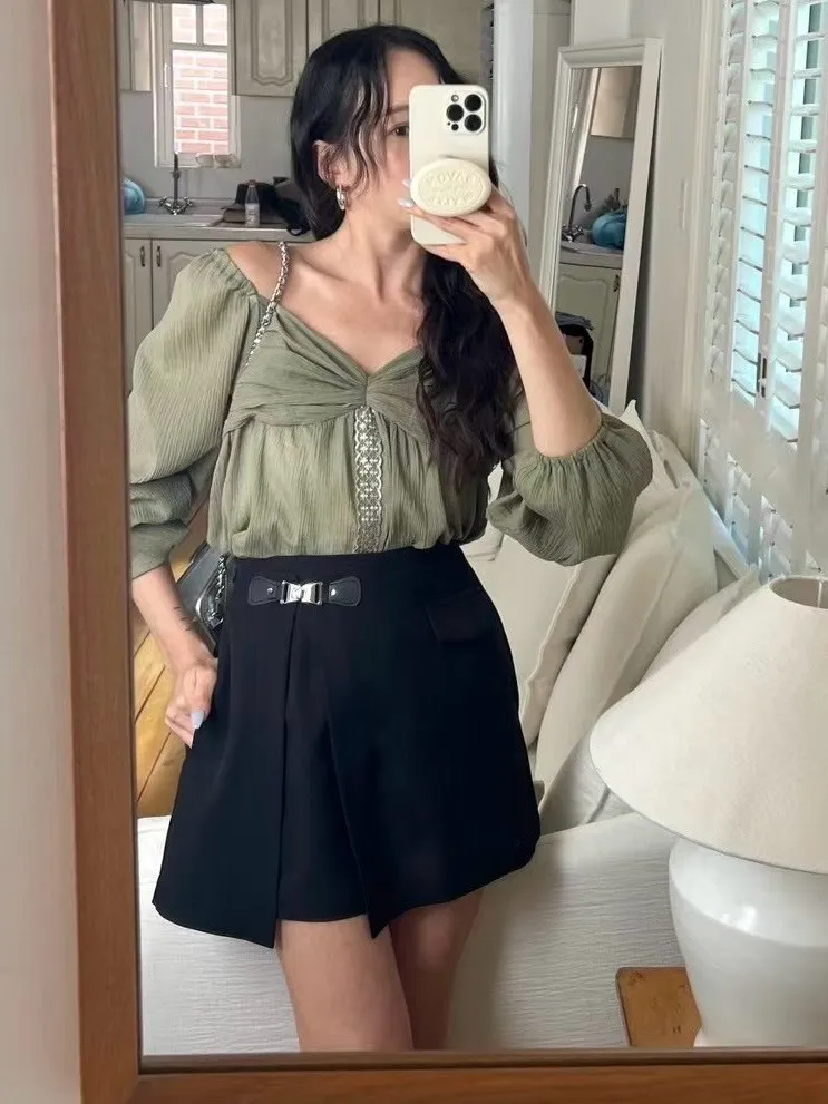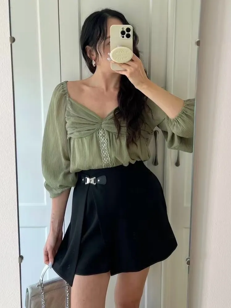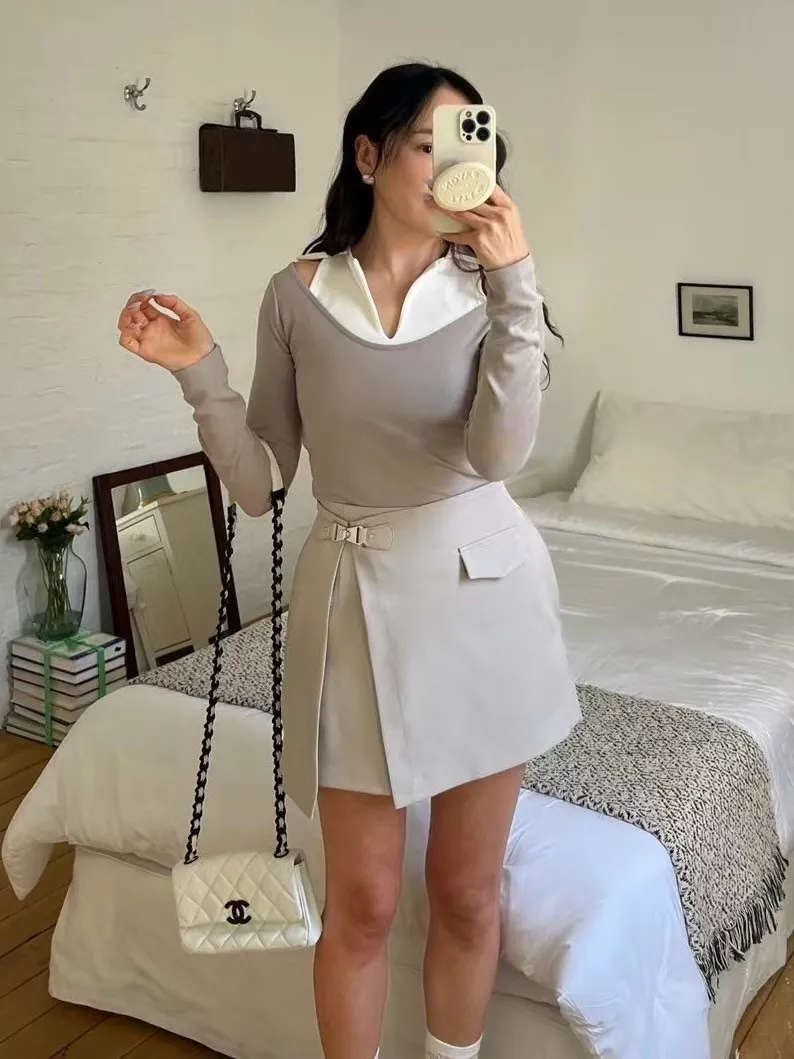 聚酯 金屬腰釦可開不可拆 後腰鬆緊 是褲裙 有口袋 穿到小L